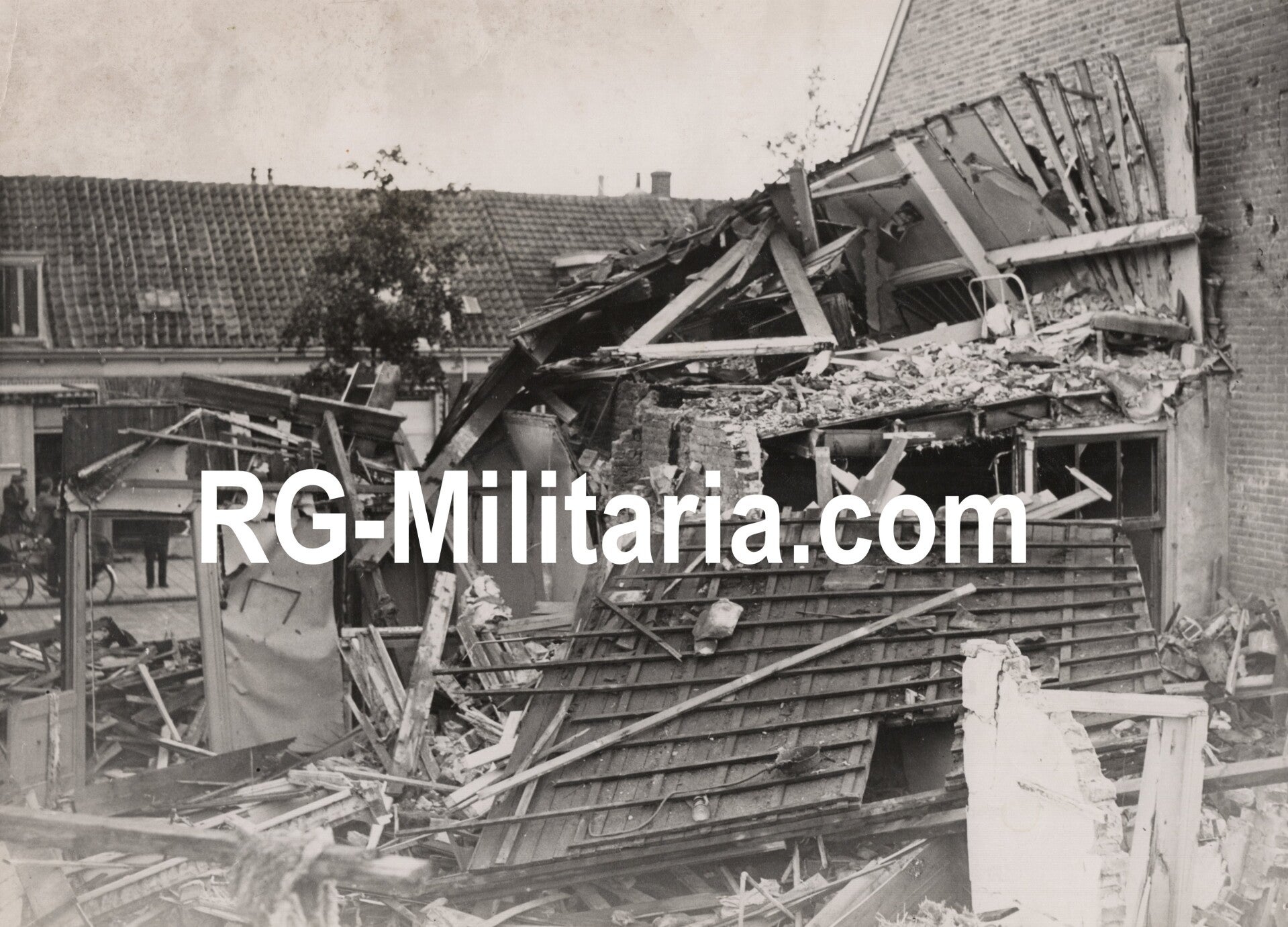 Original WW2 Dutch Press Photo - Bombed house by a British RAF Bomber, Haarlem (1940)