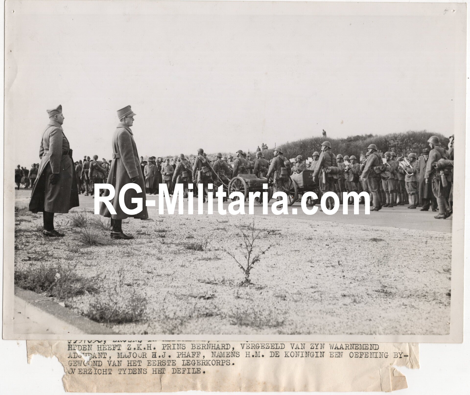Original WW2 Dutch Press Photo - Prince Bernhard inspects the First Army Corps together with Major H. J. Phaff
