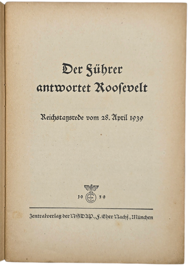 Original WW2 German Brochure - Der Führer antwortet Roosevelt, Reichstagrede Adolf Hitler (1939)