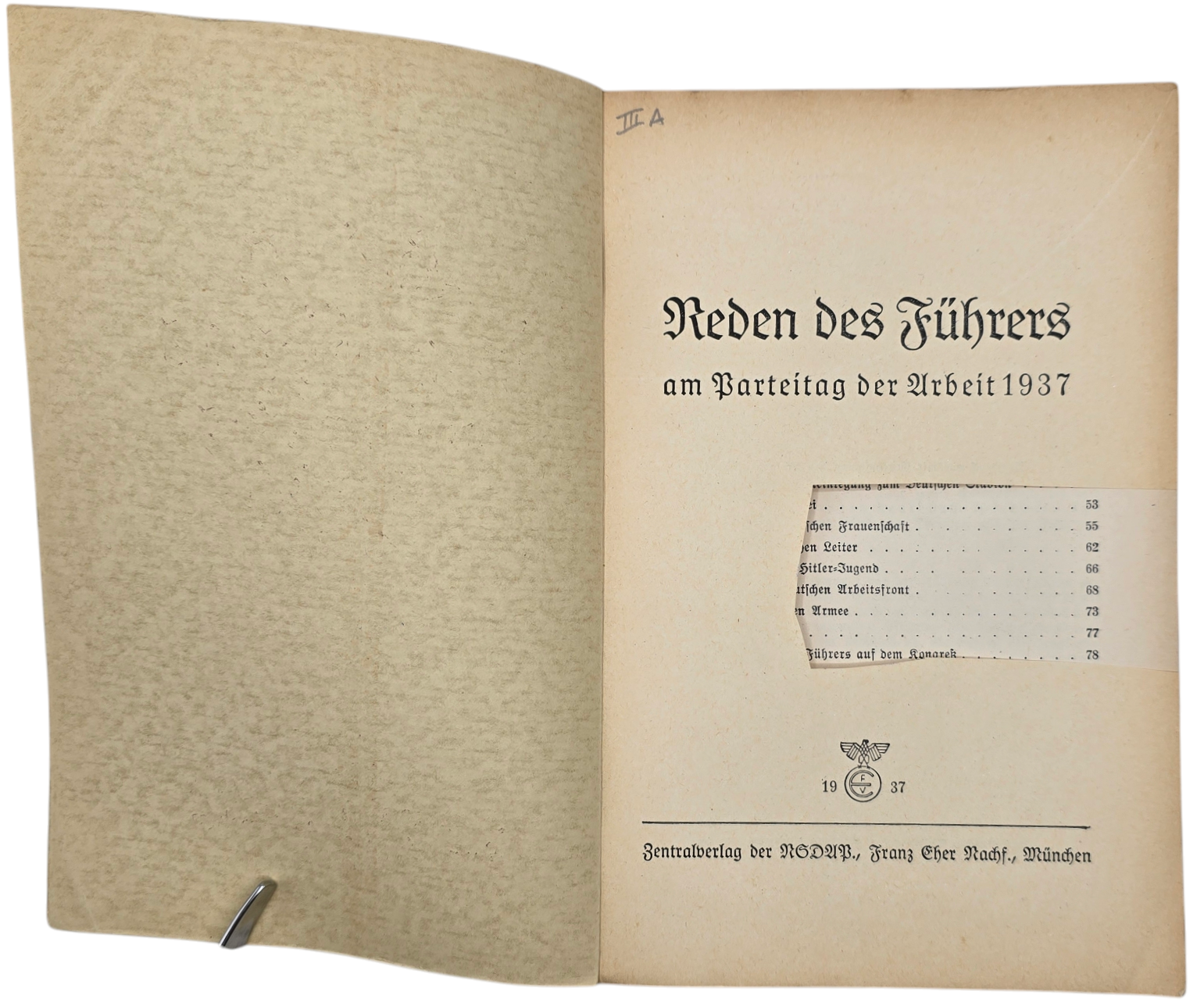 Original WW2 German Brochure - Reden des Führers am Parteitag der Arbeit, Adolf Hitler (1937)