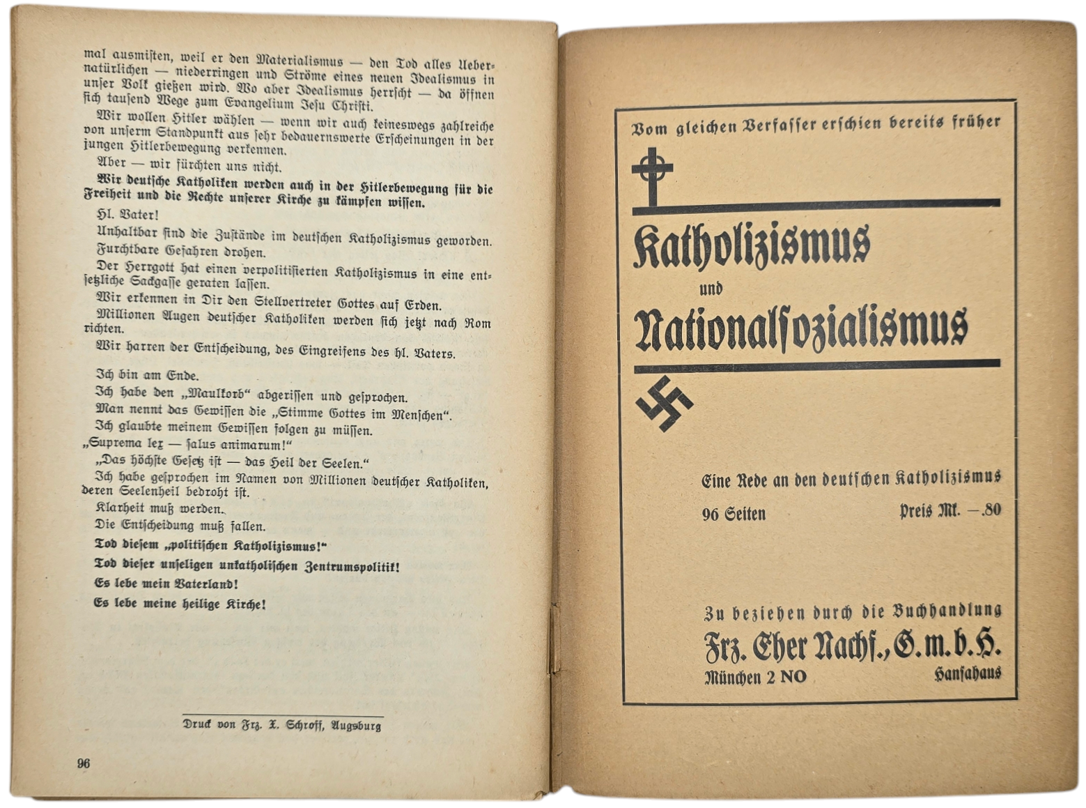 Original WW2 German Brochure - Halt! Katholizismus und Nationalsozialismus, Wilhelm Maria Senn (1931)