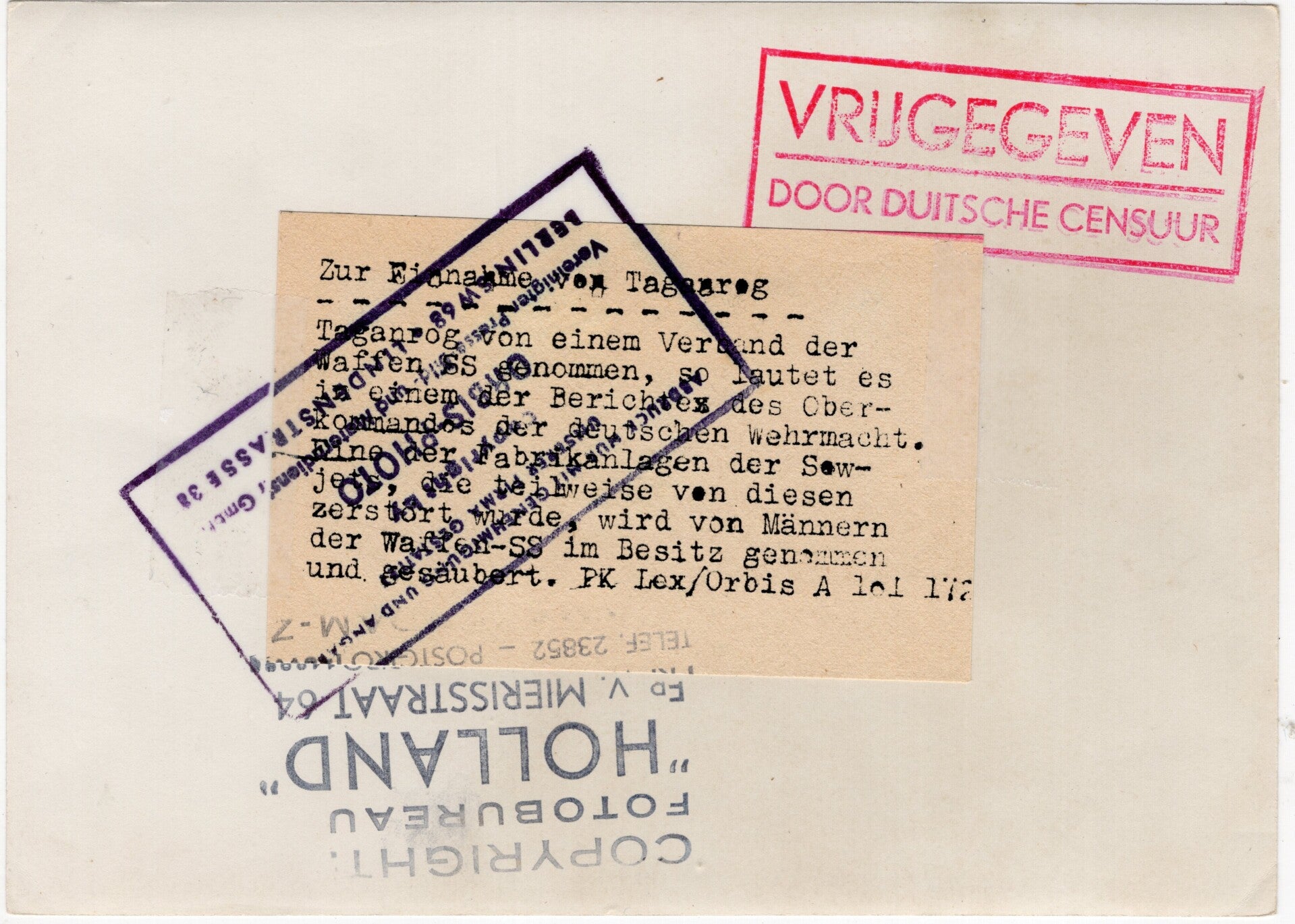 Originele Wo2 Duitse SS Persfoto - Sovjet dorp Taganrog veroverd door de Waffen SS (1941)