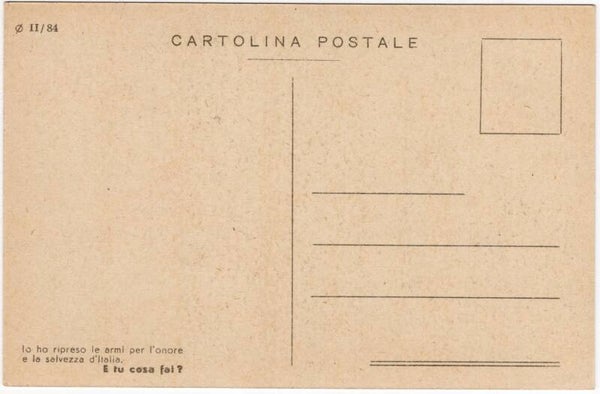 On the backside the text says ''lo ho ripreso le armi per l onore e la salvezza d italia, E tu cosa fai?'' this translates to: ''I took up arms again for the honor and salvation of Italy, and what do you do?''.