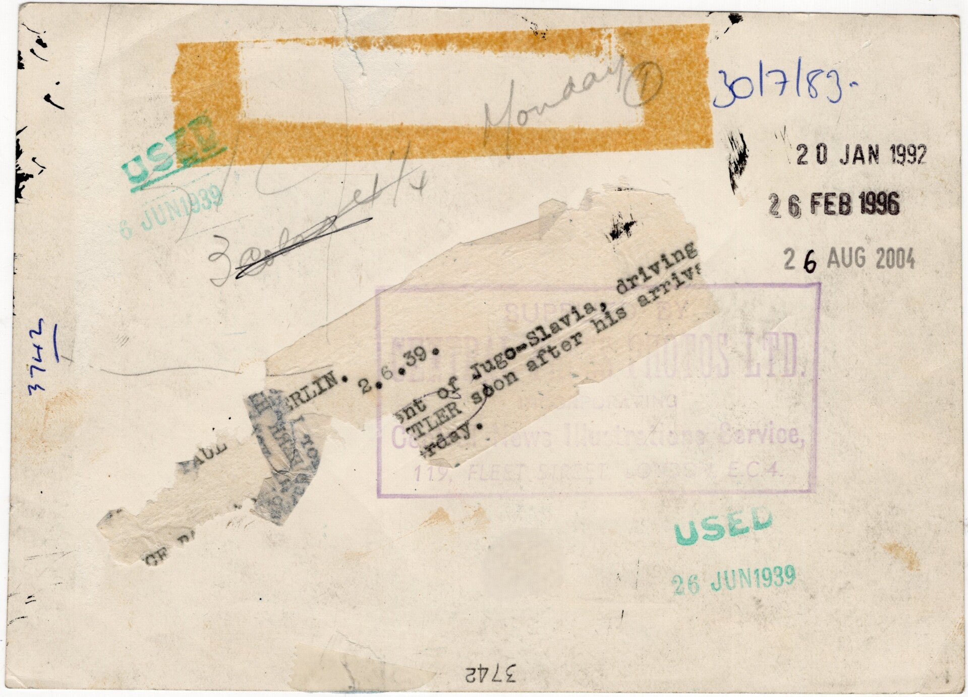 Originele Wo2 Britse Persfoto - Adolf Hitler en Paul van Jugoslavie in een auto (1939)