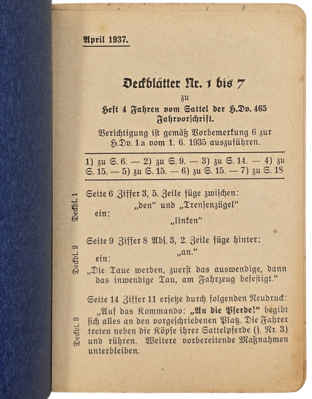 Originele Wo2 Duitse Brochure - H. Dv. 465/4 Fahrvorschrift heft 4 Fahren vom Sattel (1936)