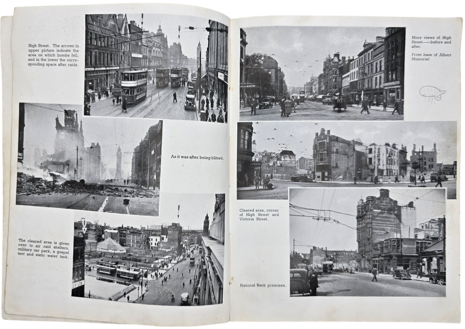 Brochure about the damage bombings by the Luftwaffe have done to Belfast in 1941. One page has some silver damage.