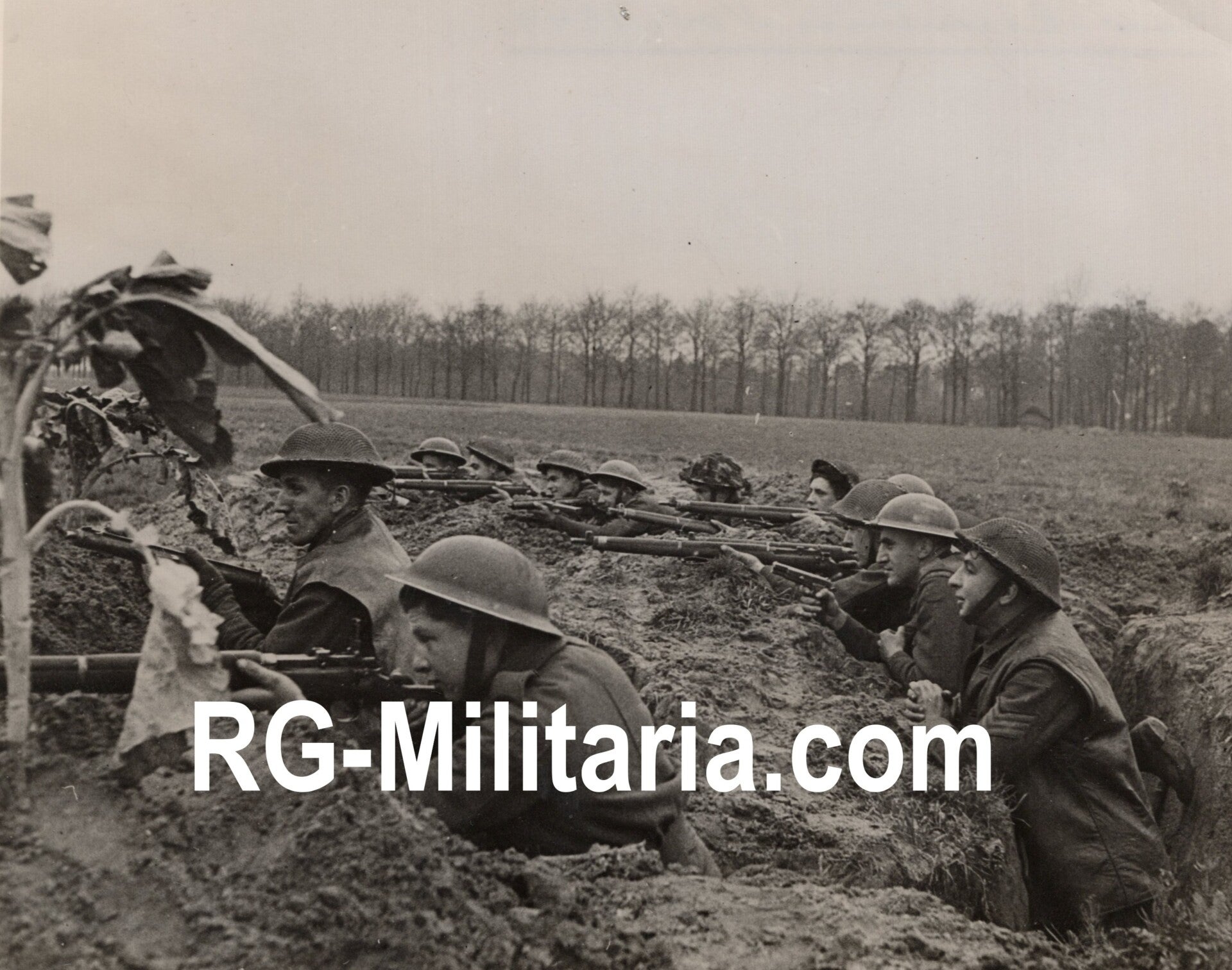 Originele Wo2 Turkse Persfoto - Britse soldaten in een loopgraf aan de Maas bij Venlo, Nederland (1945)