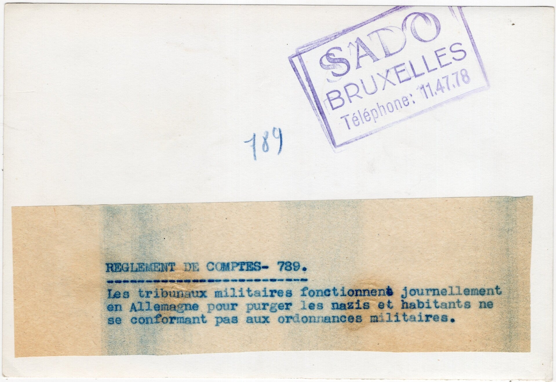 ''SETTLEMENT OF ACCOUNTS-789. Military tribunals operate daily in Germany to purge Nazis and residents who do not comply with military orders.''