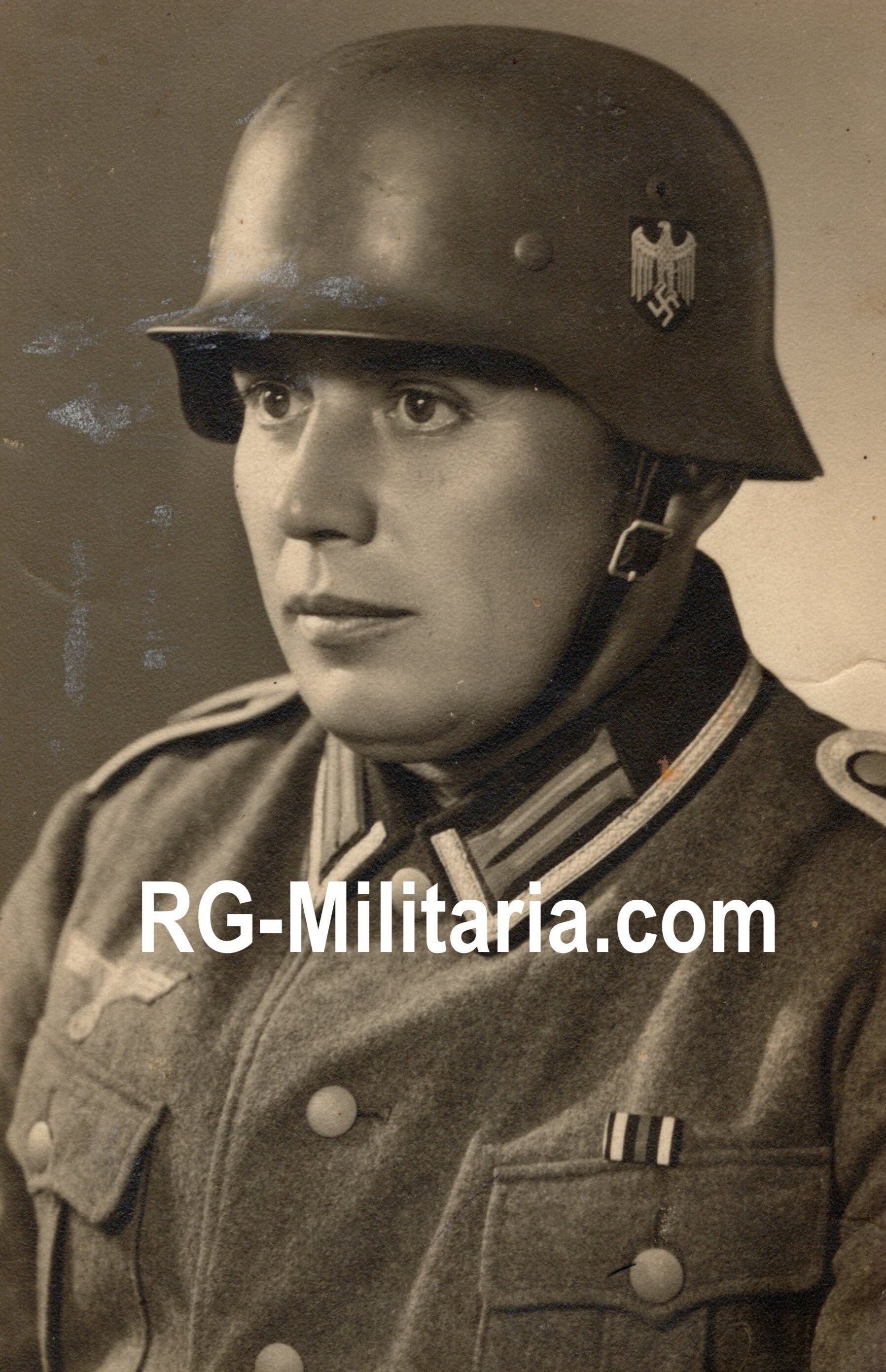 Original WW2 German Photo - Infantry soldier portrait with helmet
