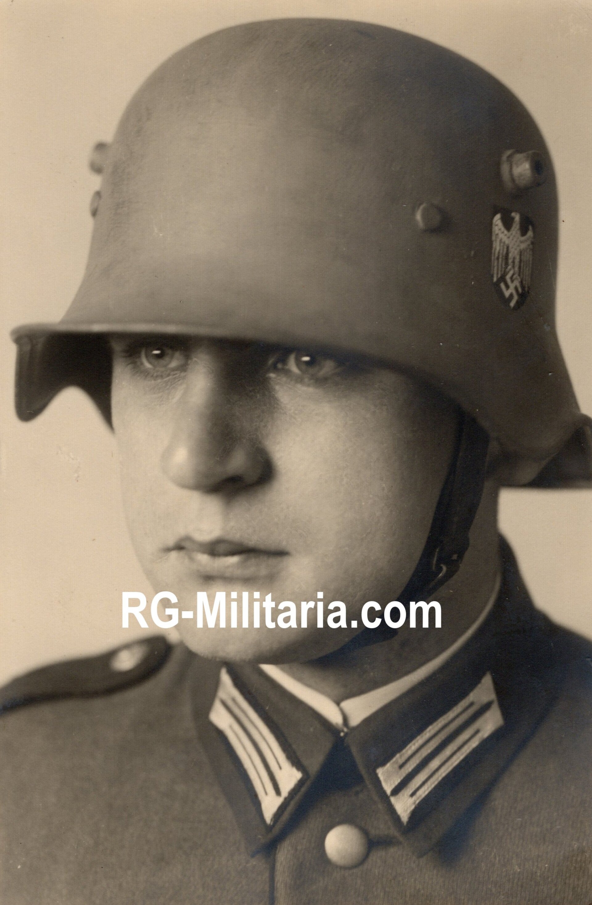 Original WW2 German Photo - German soldier with M18 ear cut-out helmet
