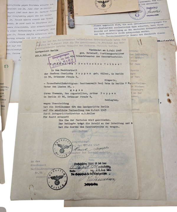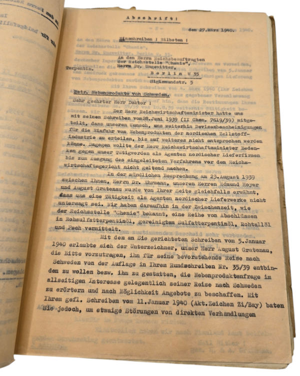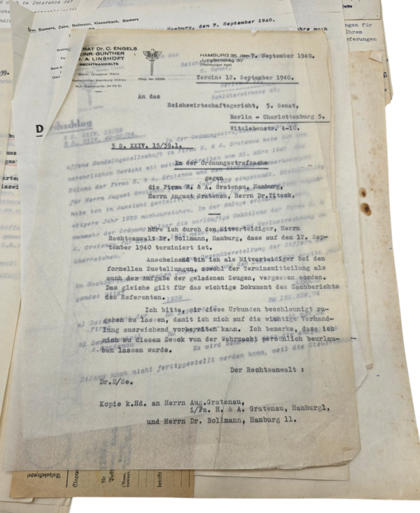 Een grote set met meer dan 100 documenten over het bedrijf Gratenau tijdens de oorlog, geproduceerde chemische materialen. De eigenaar werd gearresteerd door de Gestapo en een deel van deze documenten laat zien hoe het proces verliep. Bevat een brief aan de Reichsminister Rudolf Hess in een poging om de eigenaar van het bedrijf vrij te krijgen. Interessante set om te onderzoeken!
