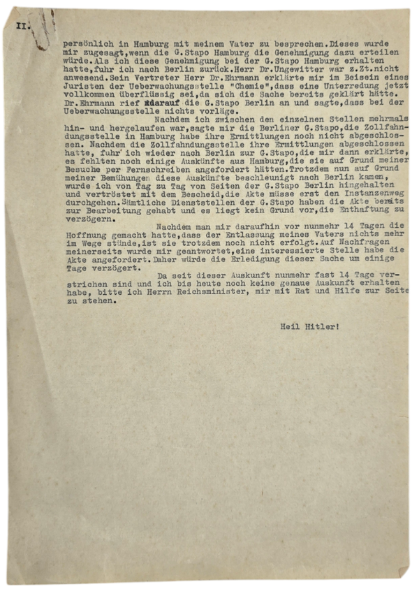 Original WW2 German Document - A large document set about the imprisonment of the Gratenau Chemie company owner, Hamburg (1939)
