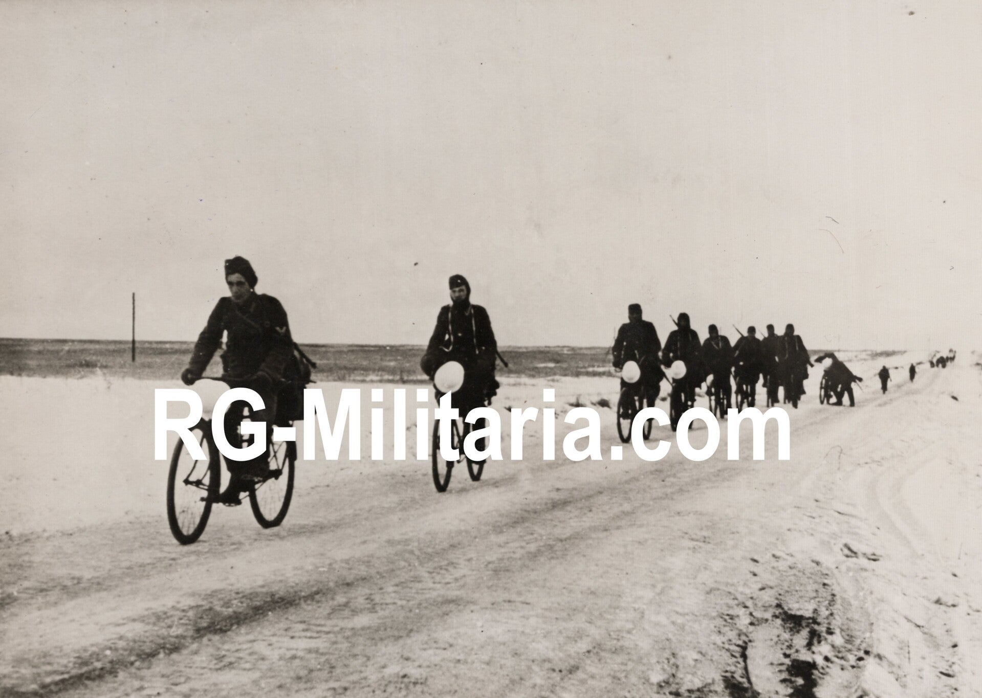 Original WW2 German Press Photo - Wehrmacht soldiers on bicycles (1943)