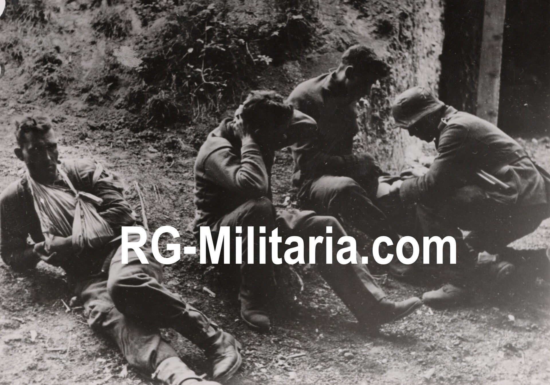Original WW2 Belgian Press Photo - German medics taking care of wounded British soldiers in Trouville, Normandy, Operation Overlord, D-Day (1944)