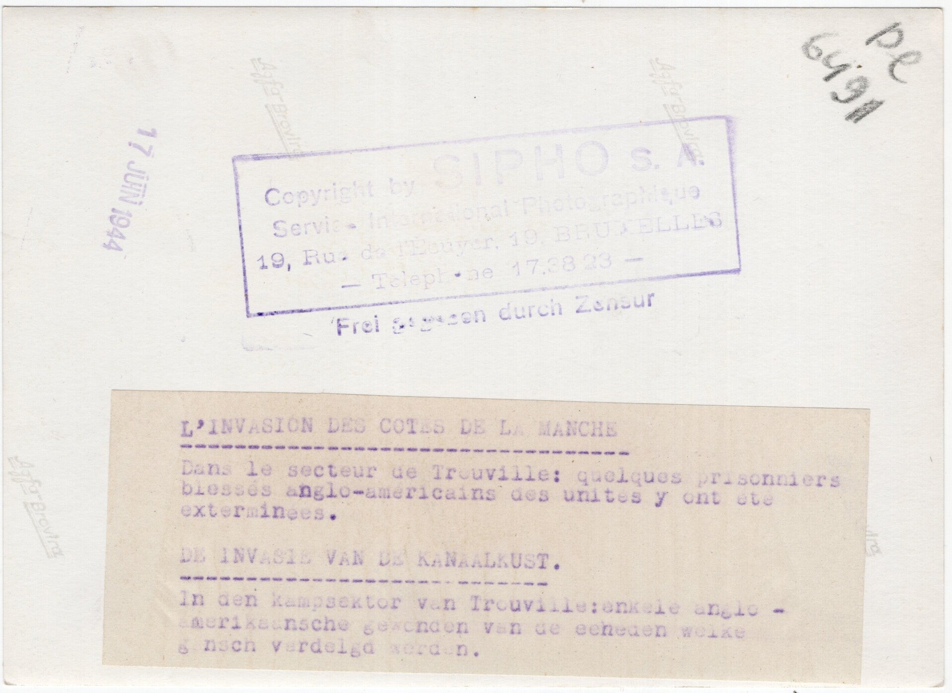 Originele Wo2 Belgische Persfoto - Duitse artsen verzorgen gewonde Britse soldaten in Trouville, Normandië, Operatie Overlord, D-Day (1944)