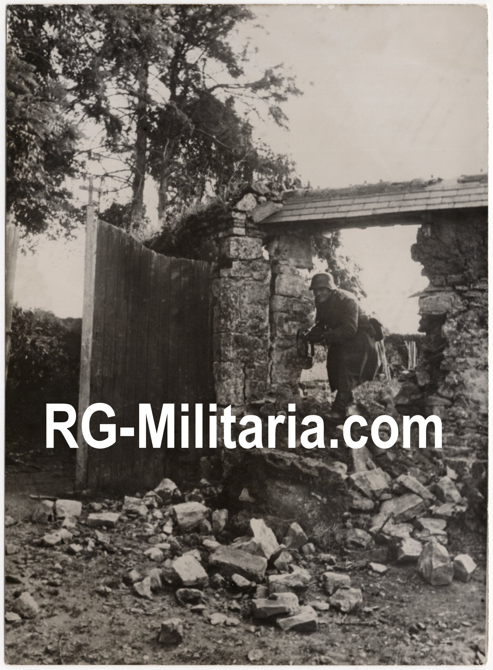 Original WW2 German Press Photo - Russian Ostvolker soldier fights allied troops in Normandy, Operation Overlord (1944)