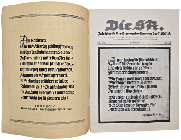Original WW2 German Magazine - Die SA Zeitschrift der Sturmabteilungen der NSDAP, 1st Year No. 21/22, Fallen soldiers list (1940)