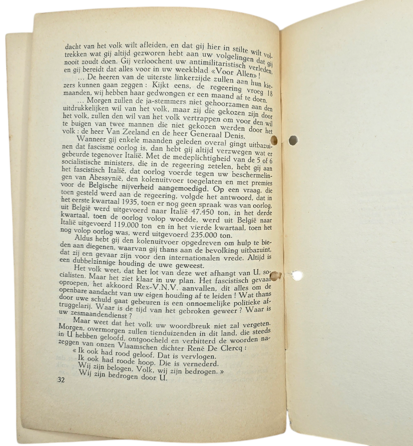 Original WW2 Flemish Collaboration Brochure - Het VNV en het Militaire vraagstuk, Staf de Clercq (1936)