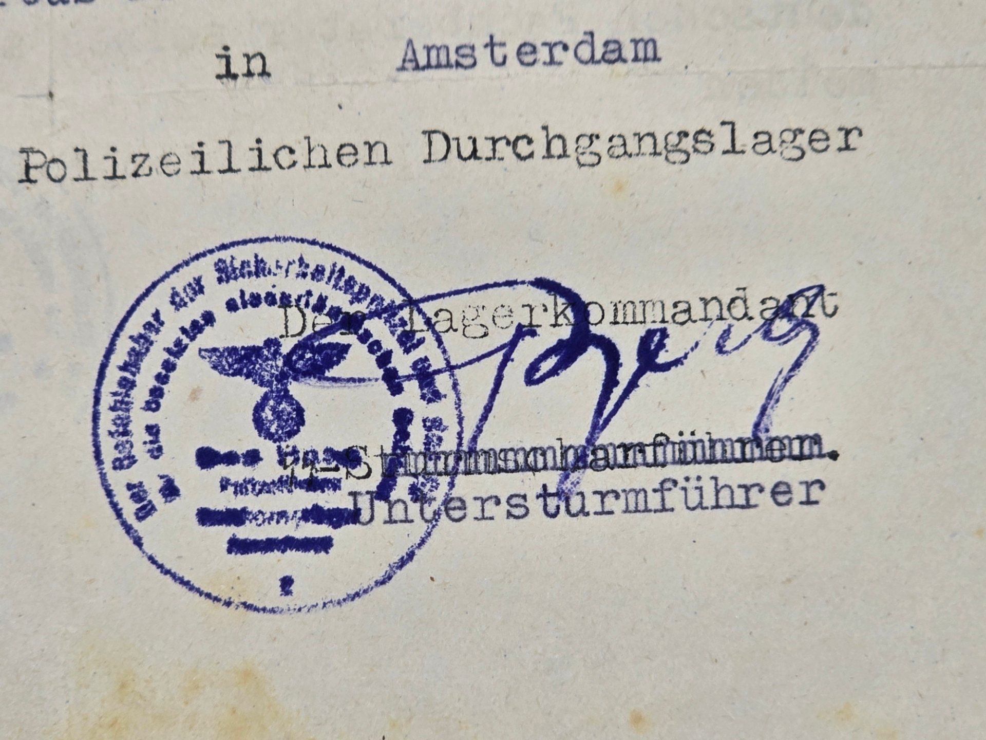 Original WW2 German Document - Entlassungsschein P. D. A. Durchangslager Amersfoort, Amsterdam (1944)