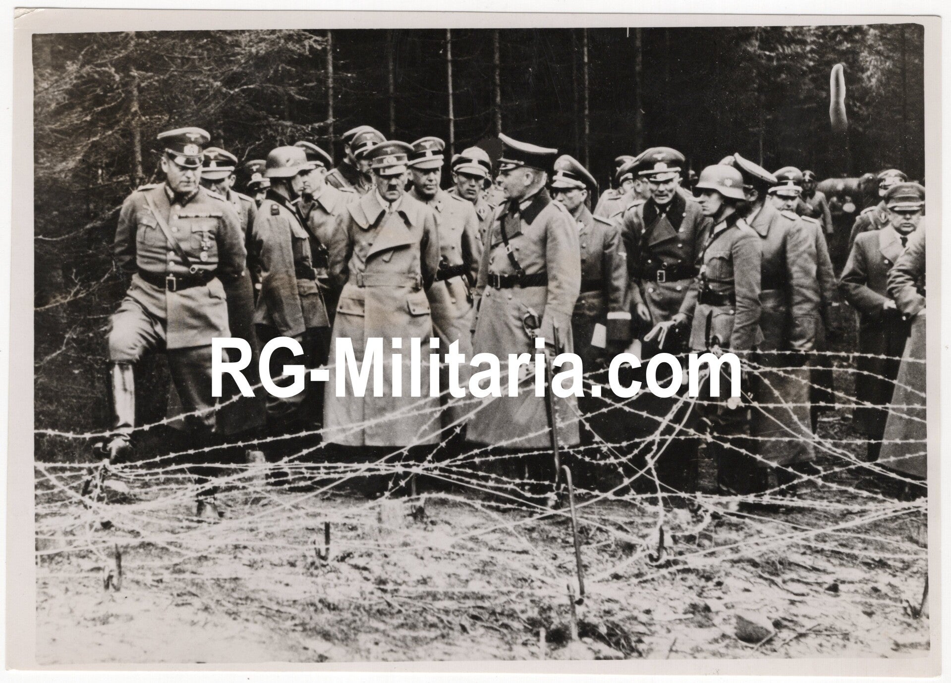 Original WW2 British Press Photo - Adolf Hitler checks out fortifications in Czechoslovakia with his Generals (1938)