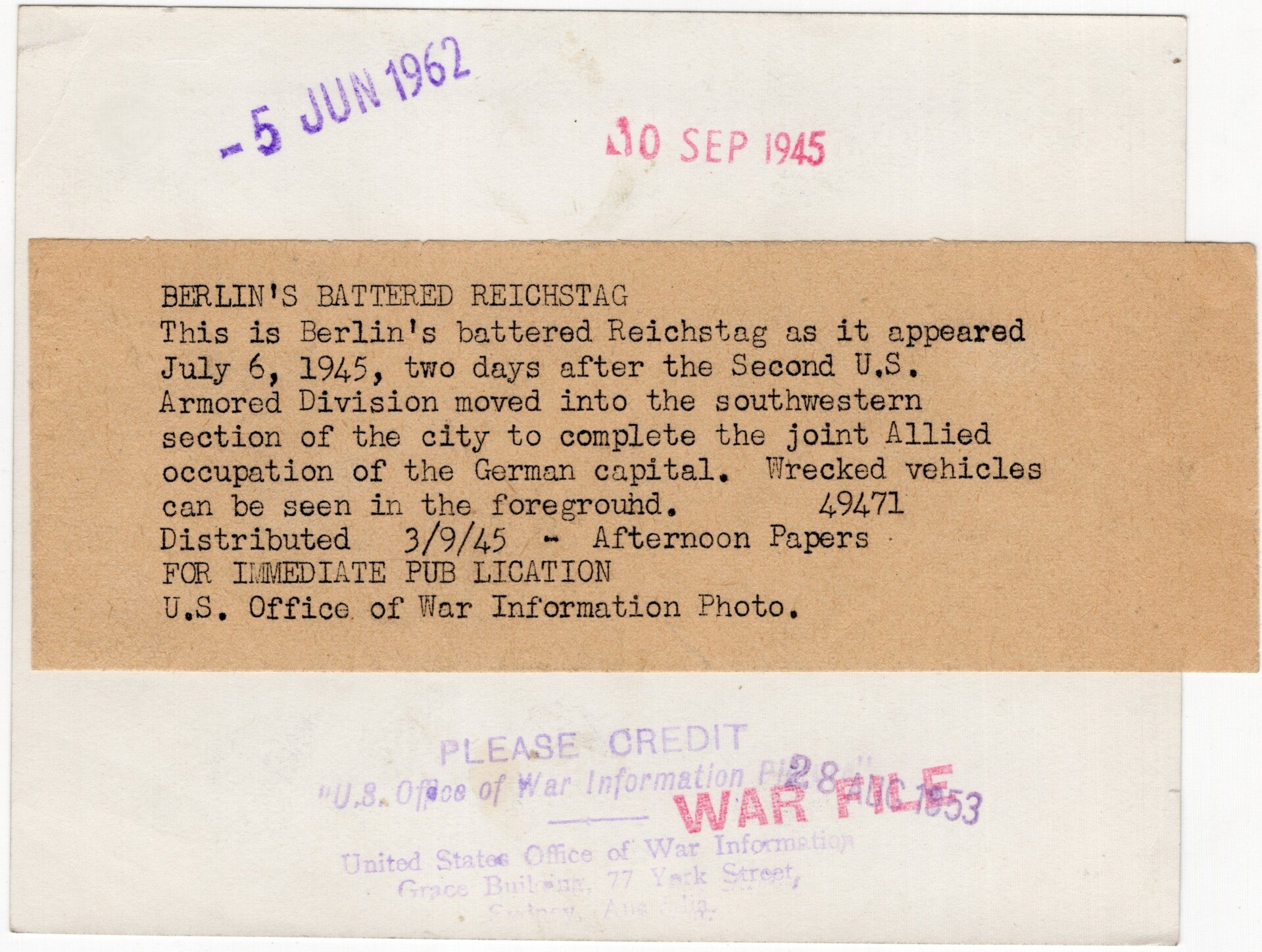Original WW2 British Press Photo - Destroyed Reichstag in Berlin (1945)