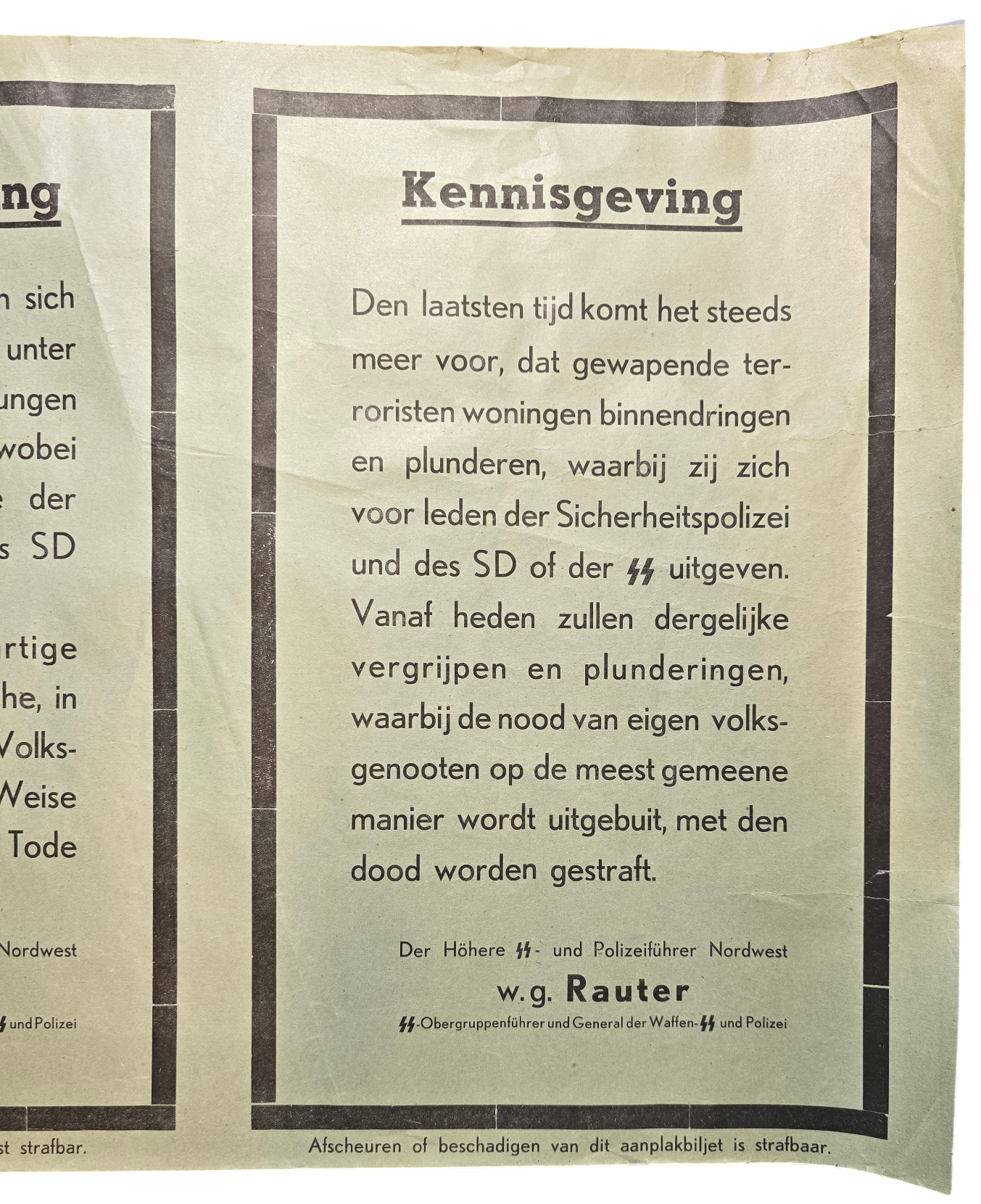 Originele Wo2 Nederlandse Waffen SS Poster - Waarschuwing tegen dieven die zich voordoen als SD- of SS-leden, Hanns Rauter