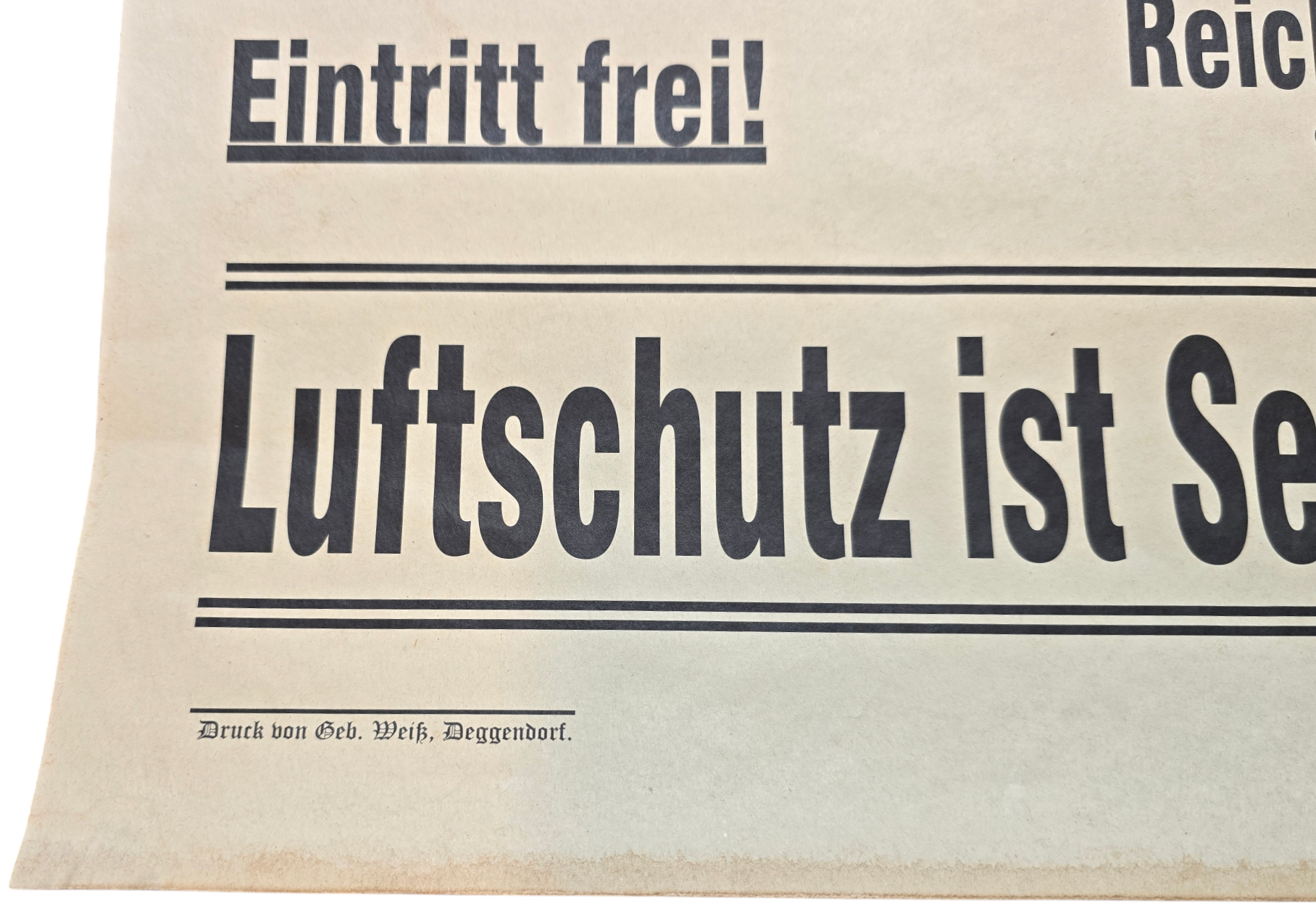 Originele Wo2 Duitse Luftschutz Poster - Reichsluftschutz Ortsgruppe Deggendorf bijeenkomst