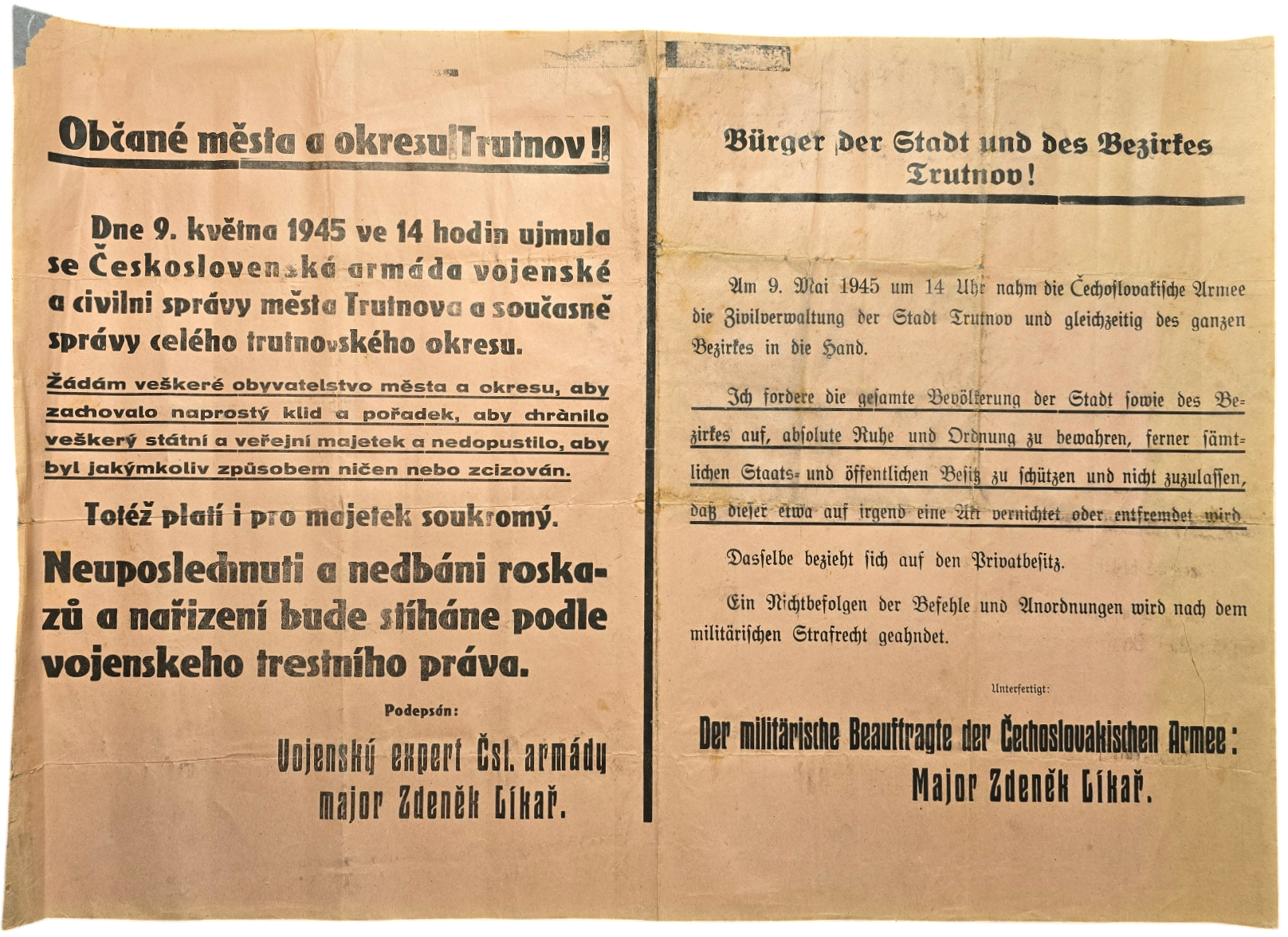 Original WW2 Czech Poster - Liberation of Trutnov, Czechoslovakia, Major Zdenek Likar (1945)