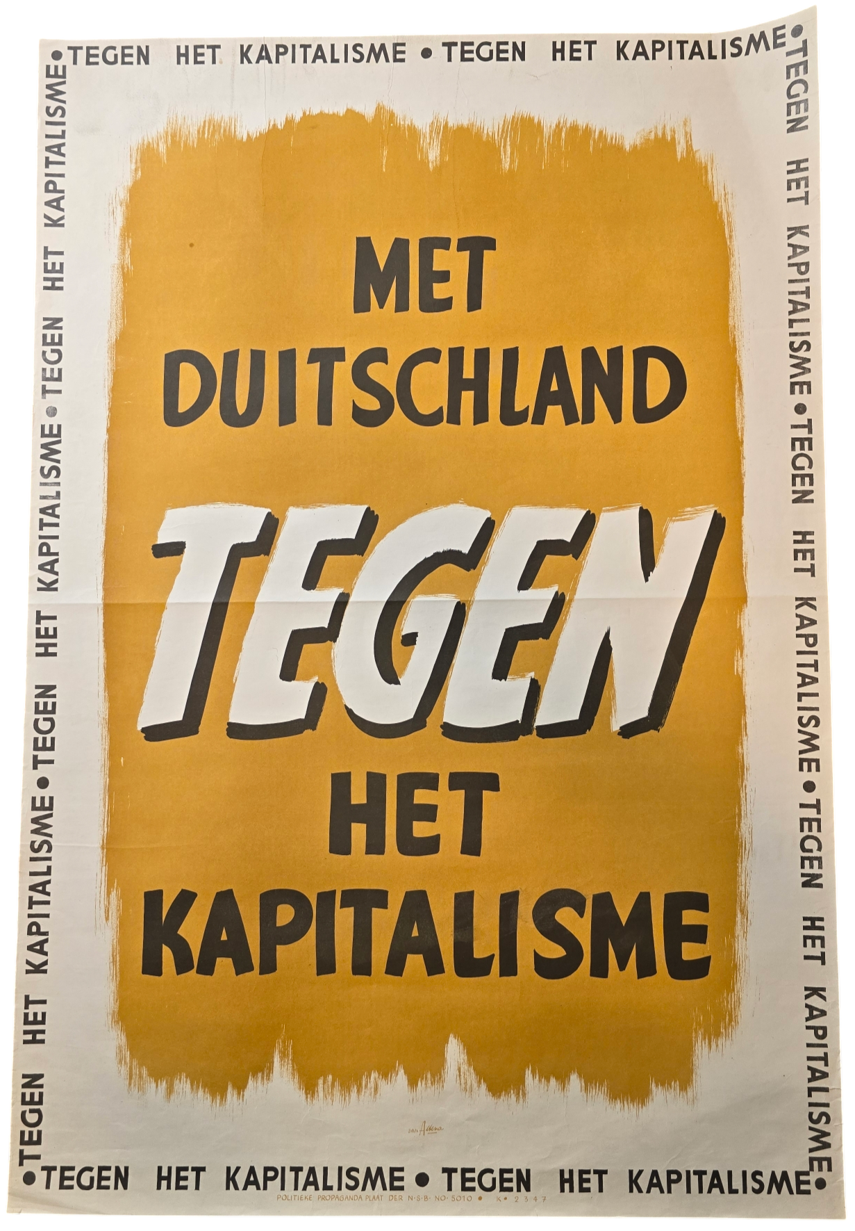 Original WW2 Dutch Collaboration NSB Poster - Met Duitschland tegen het Kapitalisme (1942)