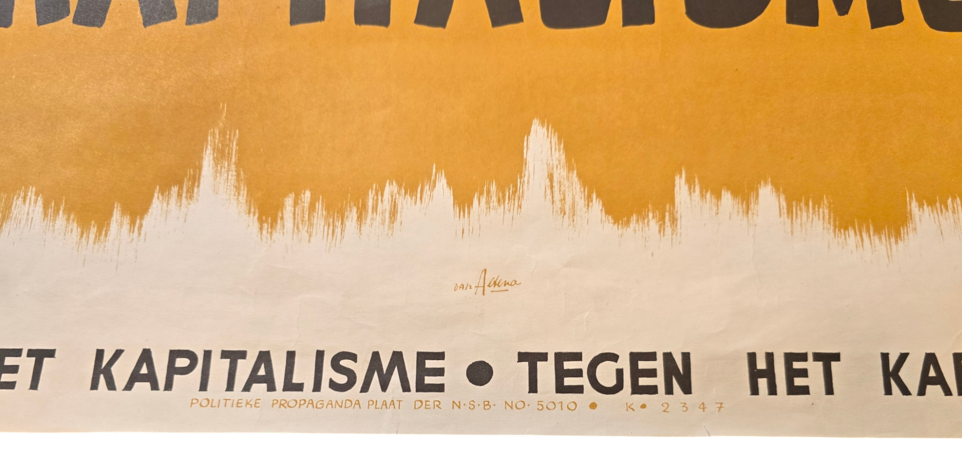 ''Met Duitschland tegen het Kapitalisme'', een NSB poster door van Altena uit 1942. Geprint in Utrecht met K number K 2347.