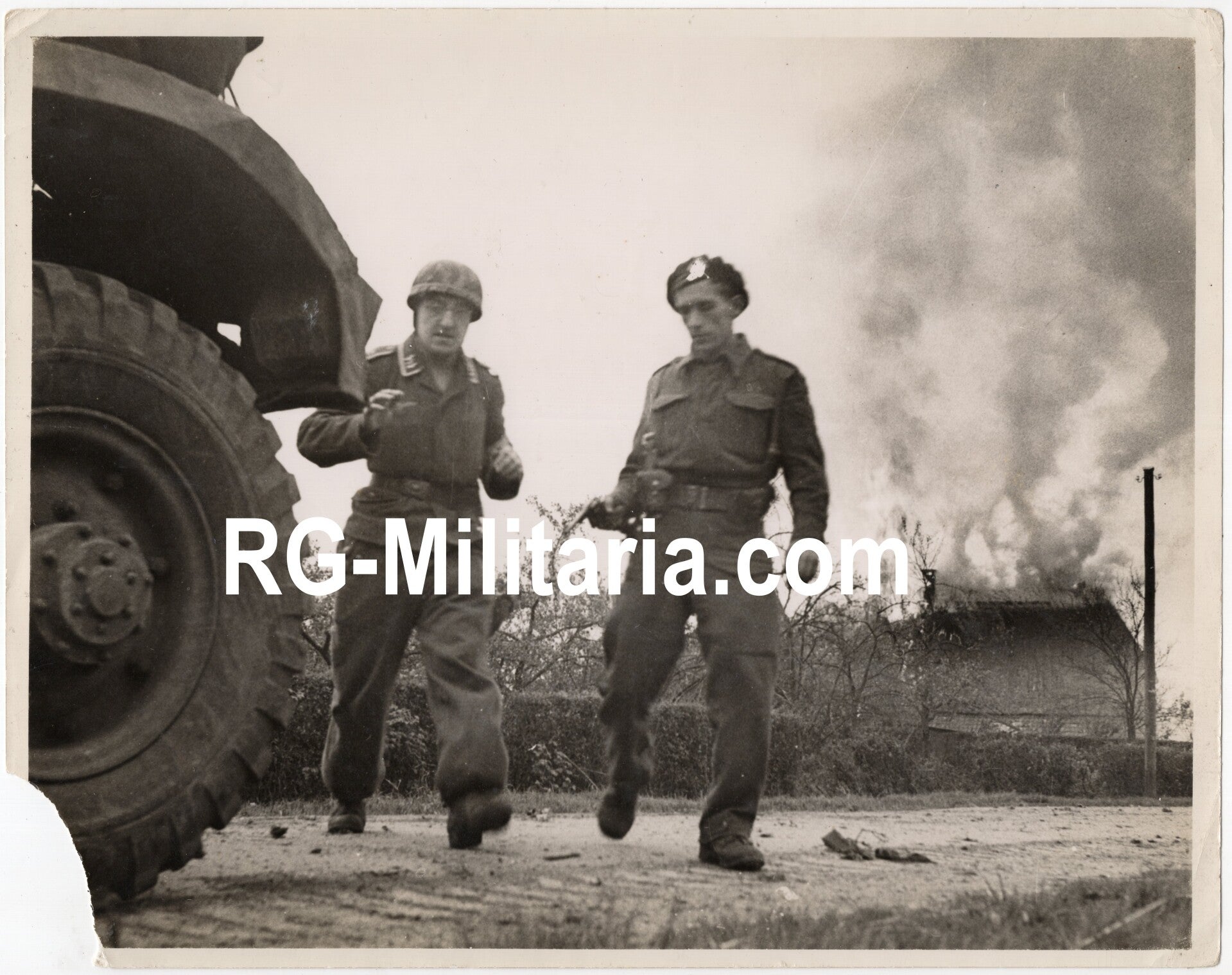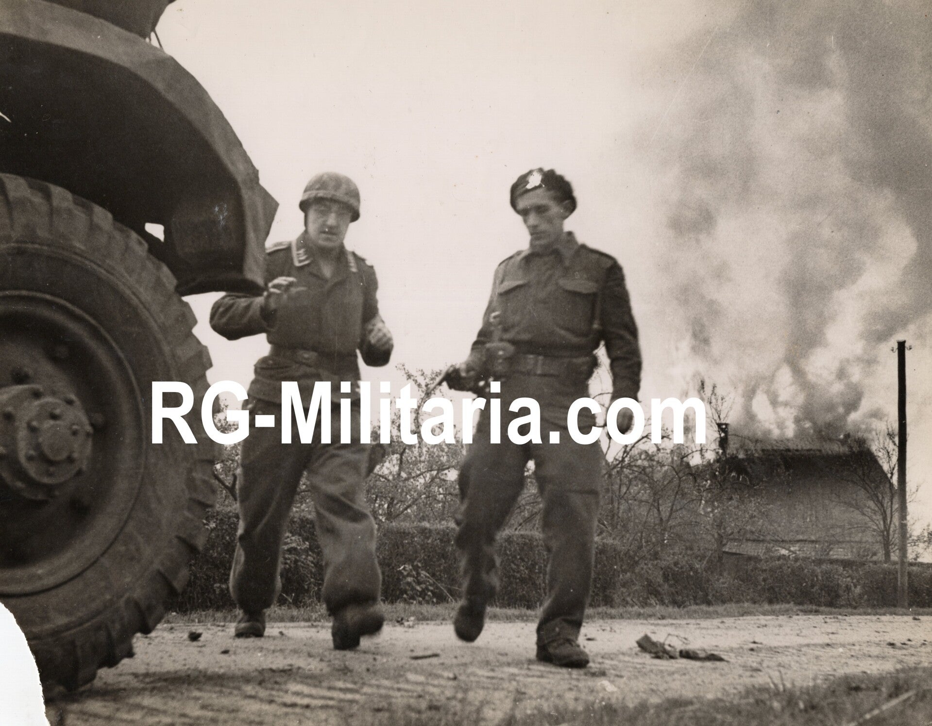 Original WW2 British Press Photo - Captured POW Fallschirmjäger by a British soldier in St. Michielsgestel, Netherlands, Operatie Pheasant (1944)