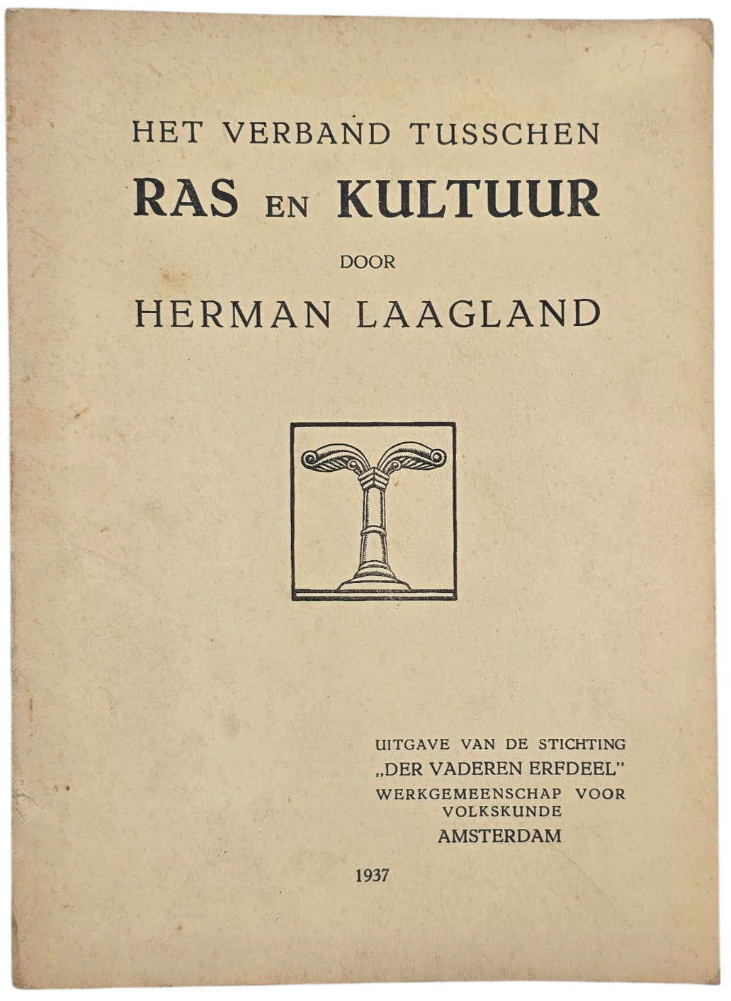 Original WW2 Dutch Collaboration NSB Brochure - Het verband tusschen Ras en Kultuur, Herman Laagland, Der Vaderen Erfdeel Amsterdam (1937)