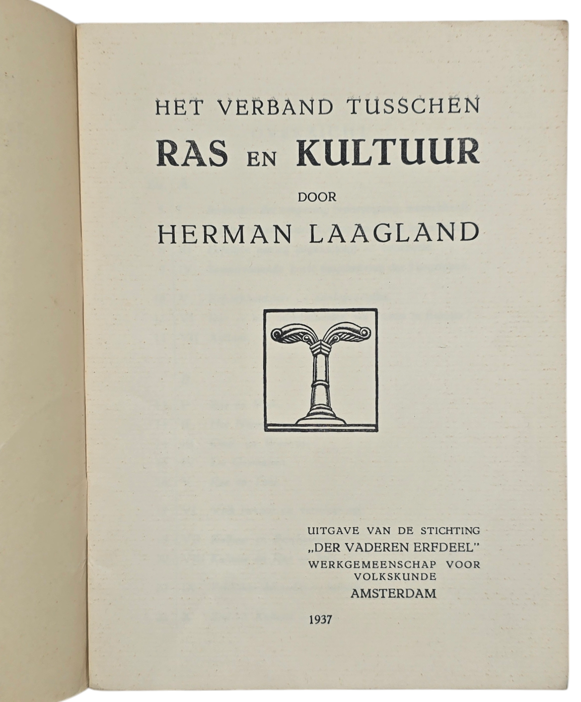 Originele Wo2 Nederlandse Collaboration NSB Brochure - Het verband tusschen Ras en Kultuur, Herman Laagland, Der Vaderen Erfdeel Amsterdam (1937)