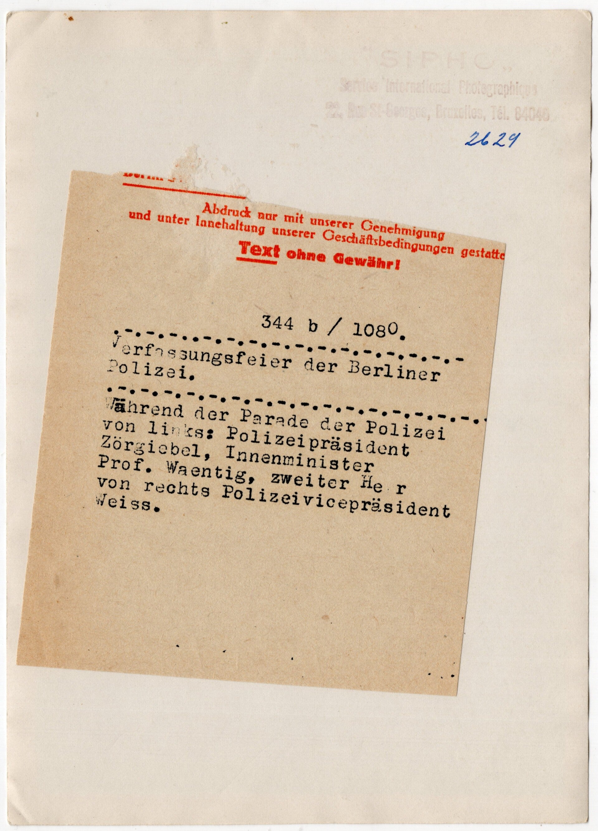 Originele Wo2 Duitse Persfoto - Verfassungstag Weimar Republik,Polizeipräsident Karl Zörgiebel, Professor Waentig, Bernhard Weiss, Polizei, Berlijn