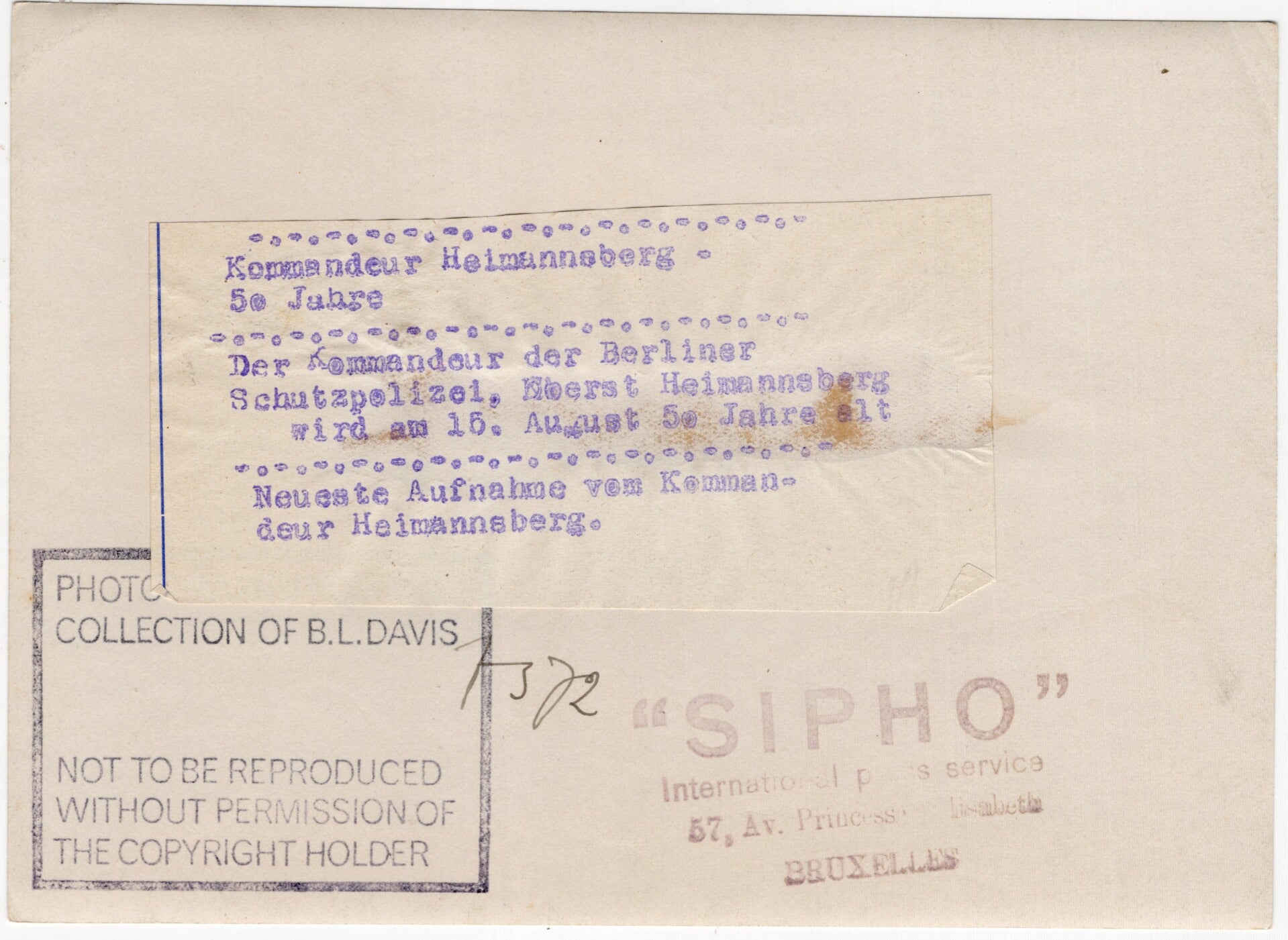 Originele Wo2 Duitse Persfoto - Berlijnse schutzpolizei-commandant Magnus Heimannsberg (1931)