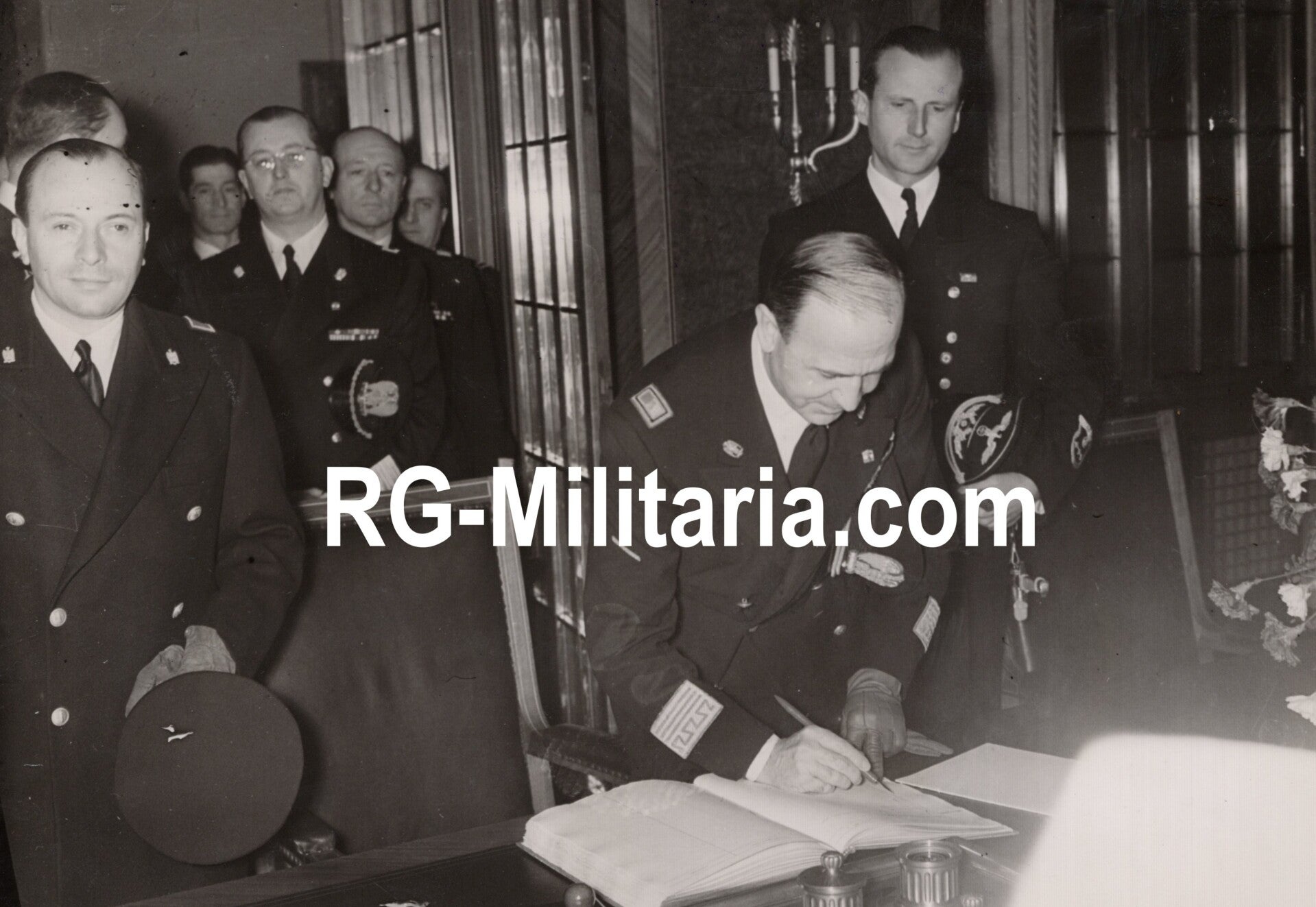 Original WW2 German Press Photo - Italian minister Dino Alfieri signing in on the Birthday of Adolf Hitler (1942)