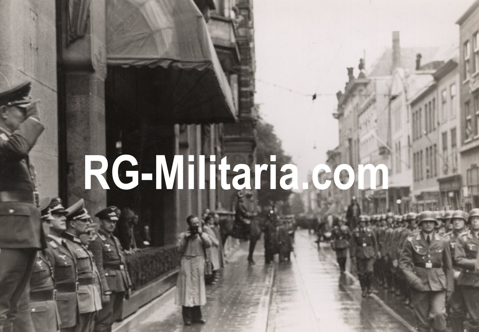 Original WW2 German Photo - WBN Friedrich Christiansen salutes Luftwaffe soldiers in The Hague (1940)