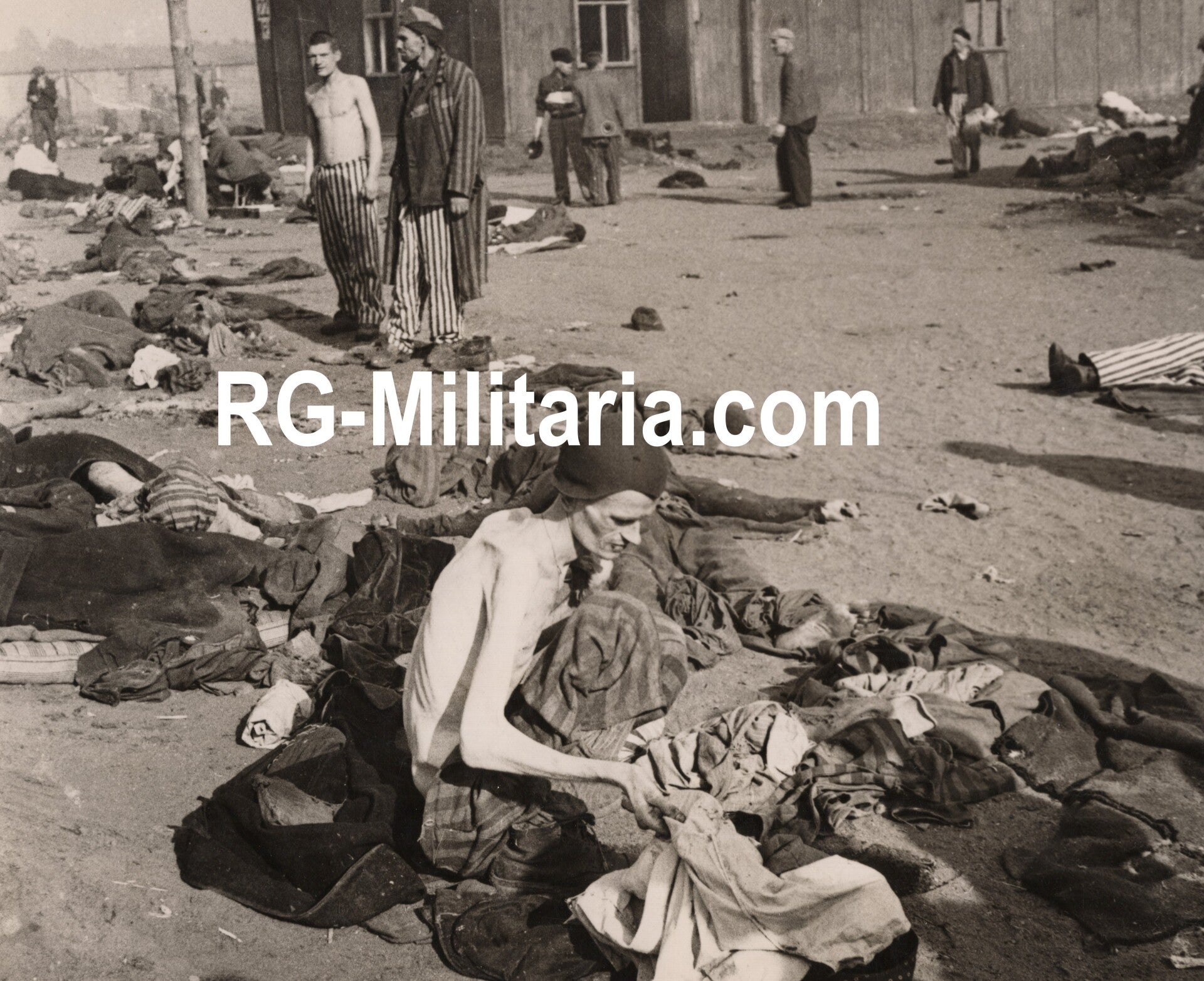 Original WW2 British Press Photo - Liberated prisoners of the Bergen Belsen Concentration camp (1945)