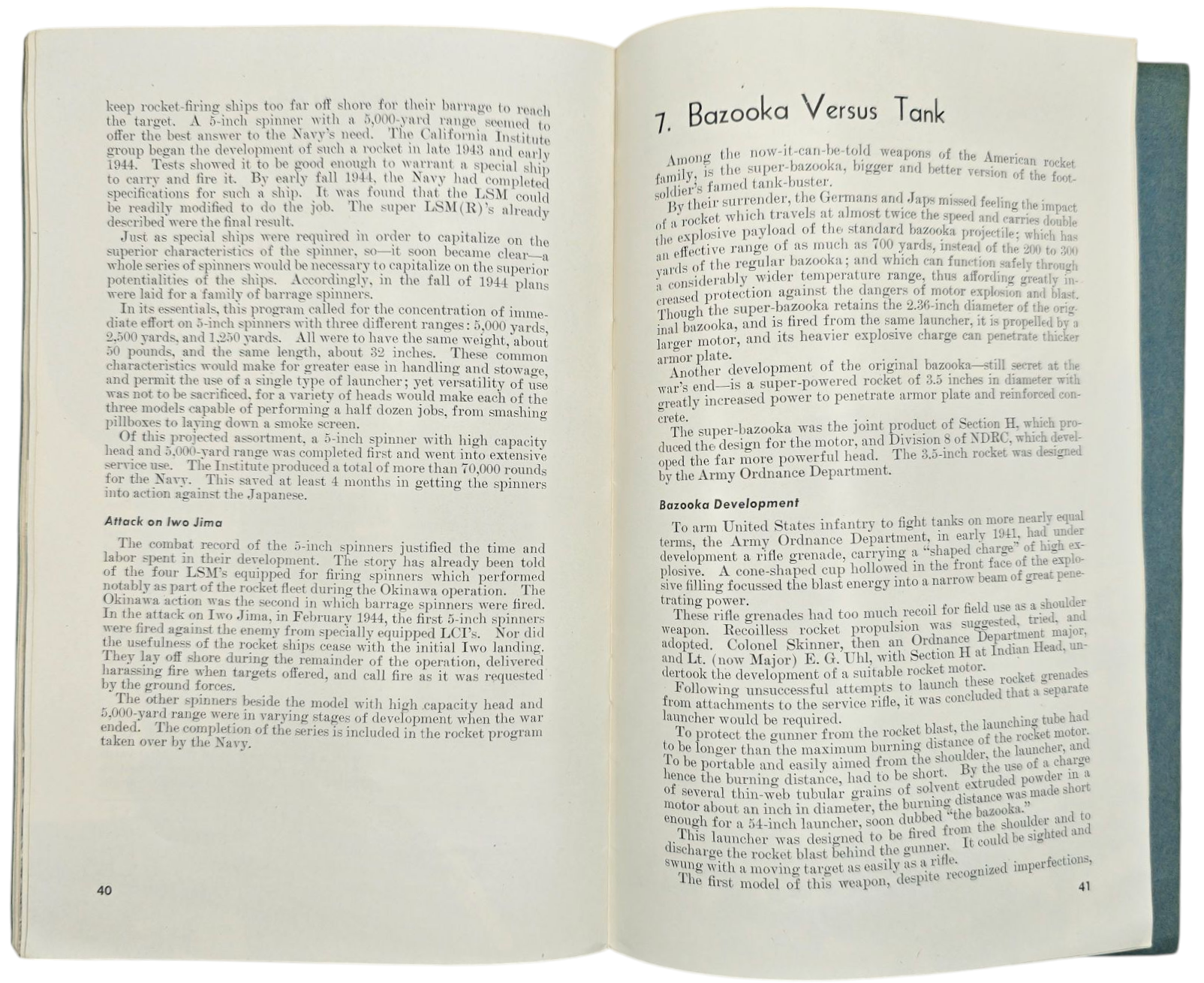 Amerikaanse brochure over onderzoek en ontwikkeling van raketten tijdens de Tweede Wereldoorlog.
