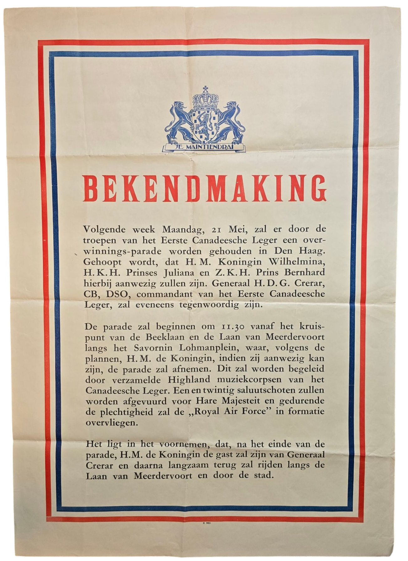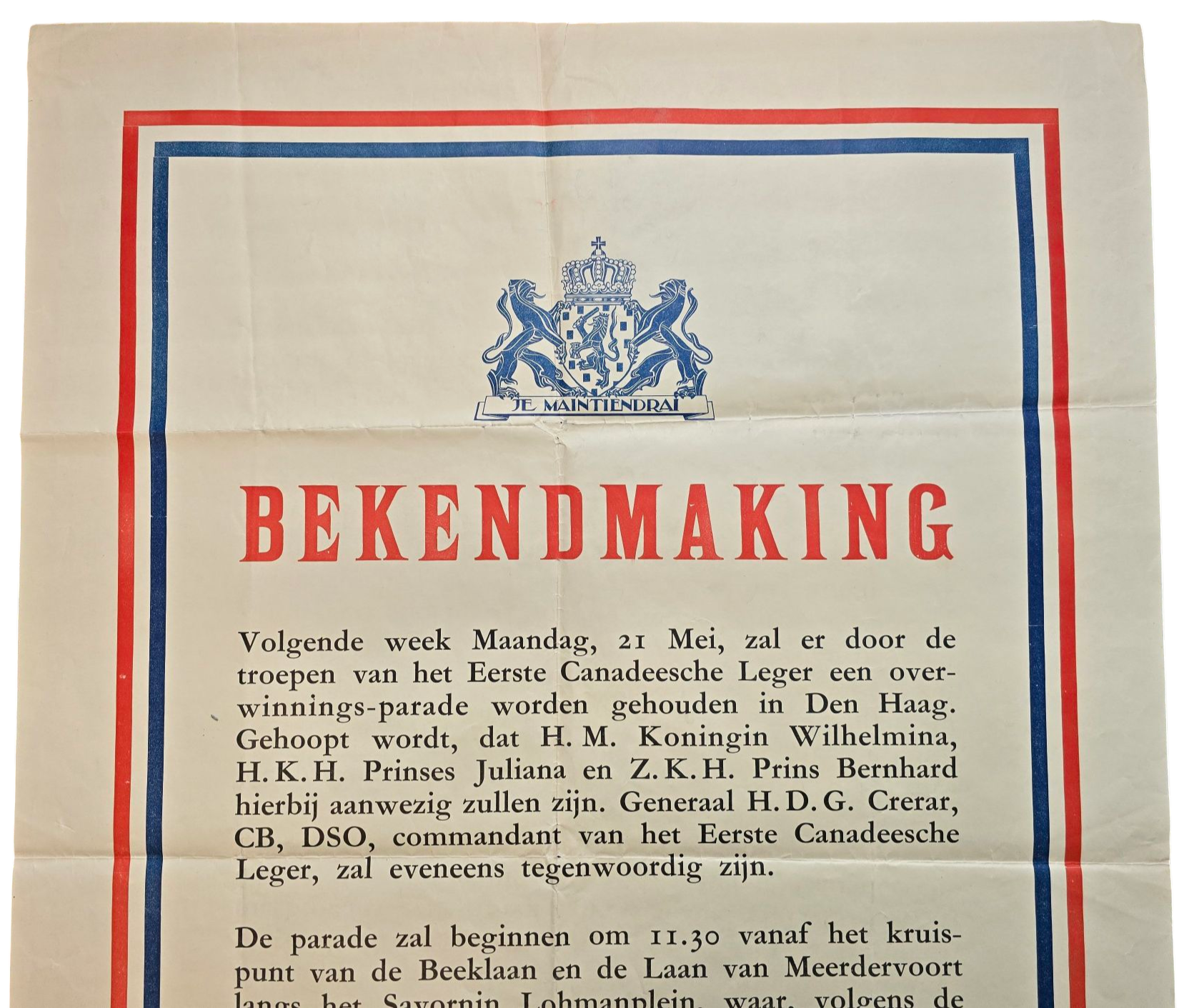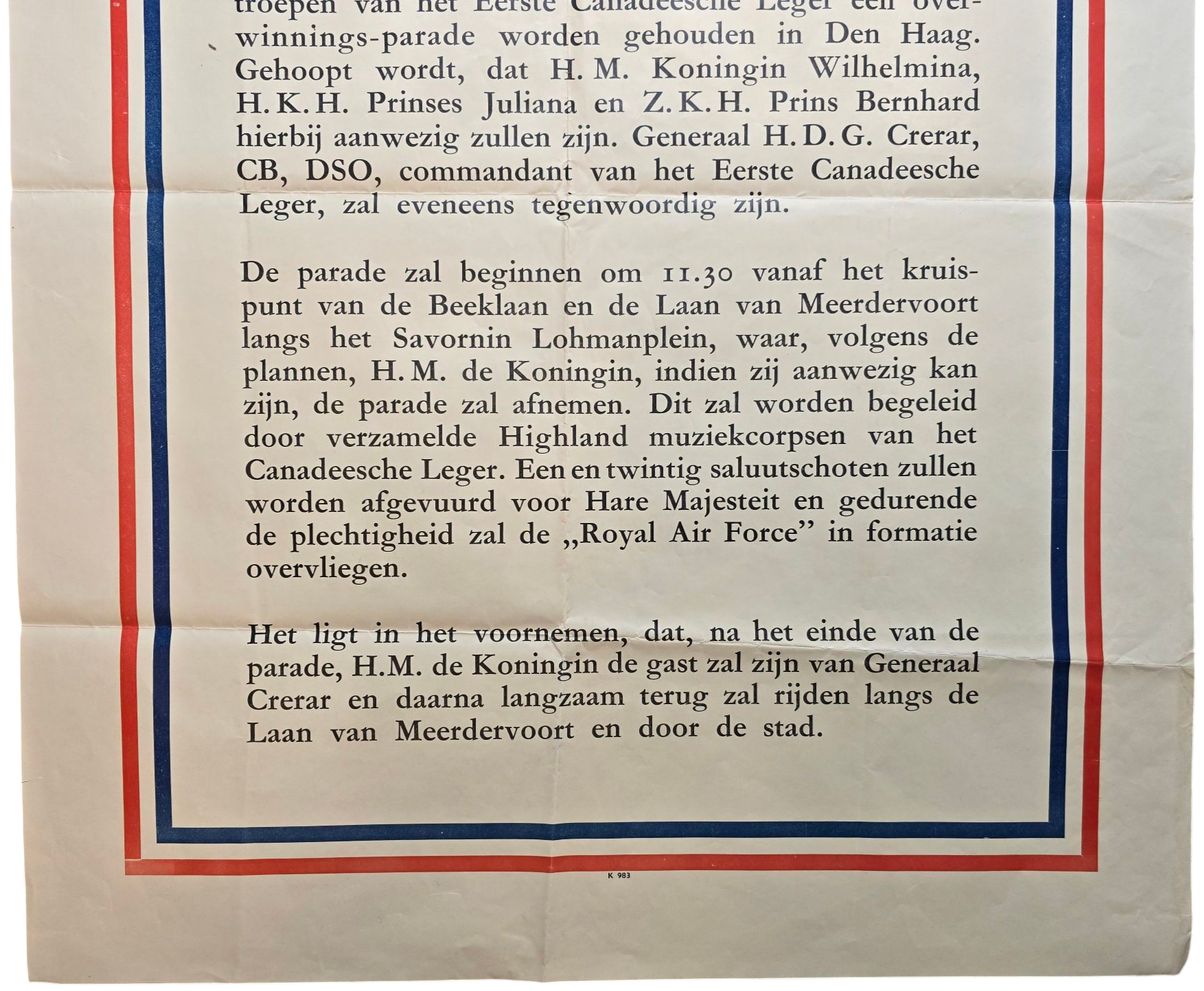 Original WW2 Dutch Liberation Poster - Military Parade 1st Canadian Army in The Hague (1945)