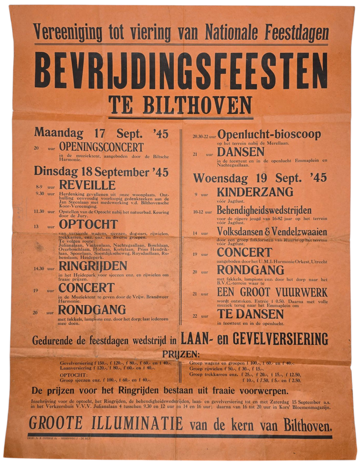 Originele Wo2 Nederlandse Bevrijding Poster -Bevrijdingsfeest Bilthoven (1945)