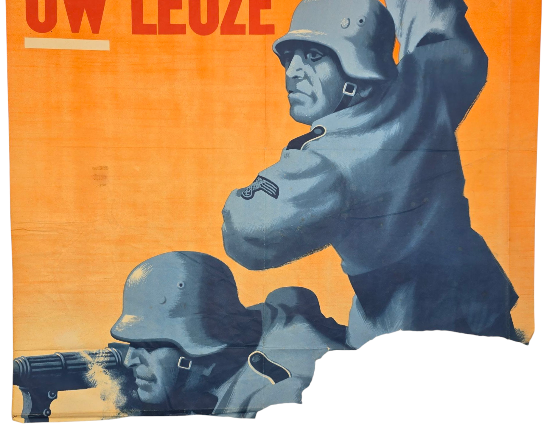 Original Dutch Waffen SS poster by Manche from 1943. The poster is not complete. A few repairs with acid-free tape.