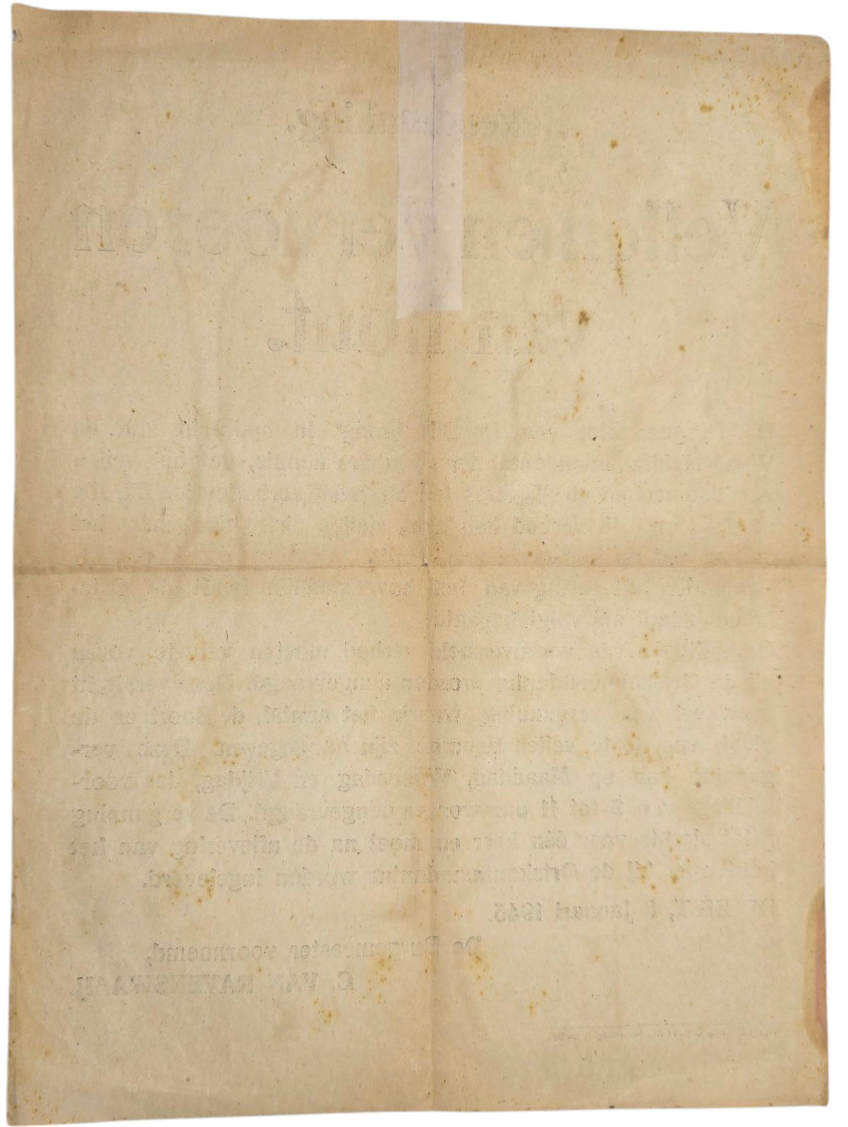 Original WW2 Dutch Poster - Prohibition on cutting trees, De Bilt, C. van Ravenswaaij, January (1945)
