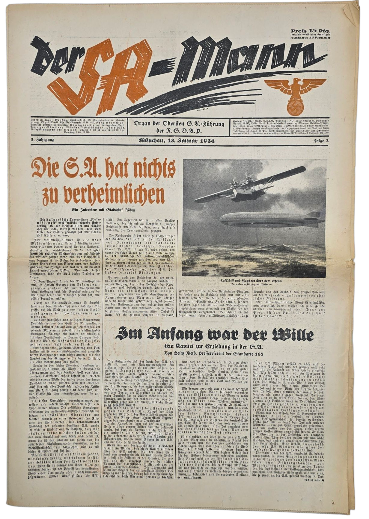 Original WW2 German SA Newspaper - Der SA-Mann 3rd year no 2 (1934)