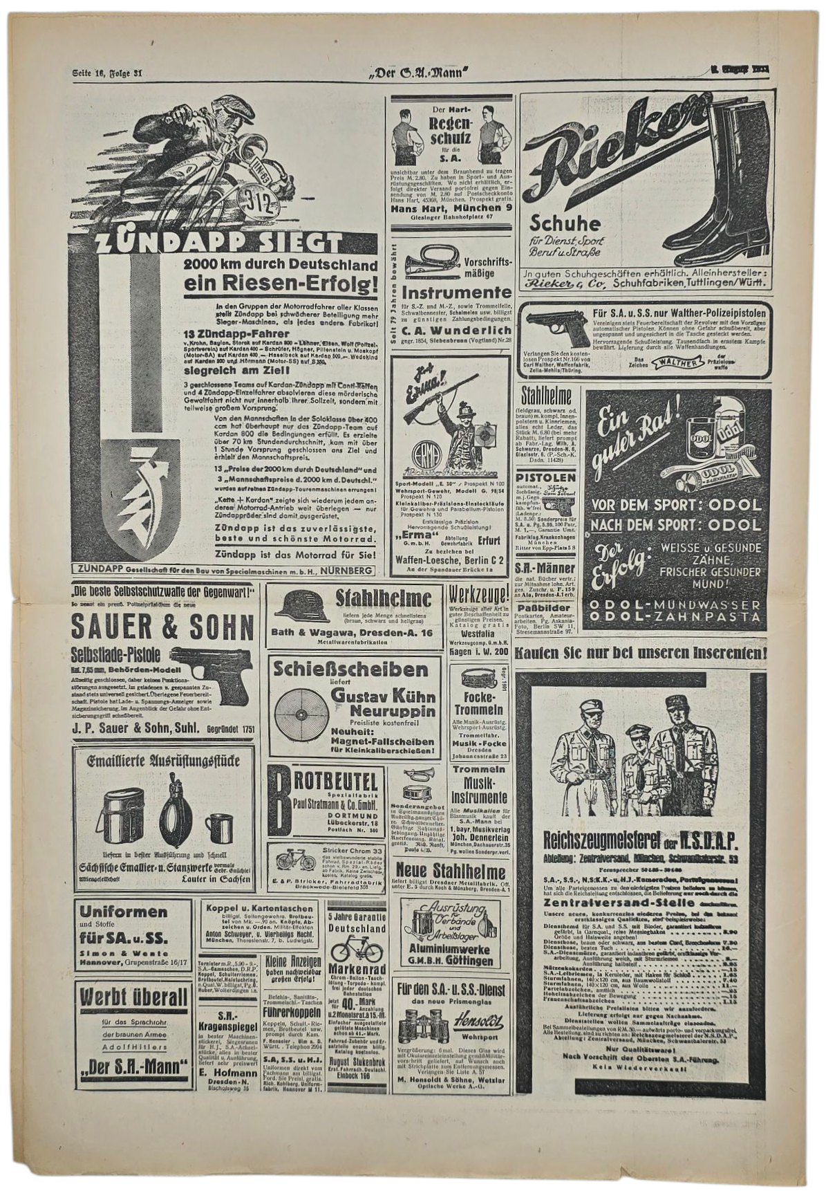 Original WW2 German SA Newspaper - Der SA-Mann 2de year no 31 (1933)