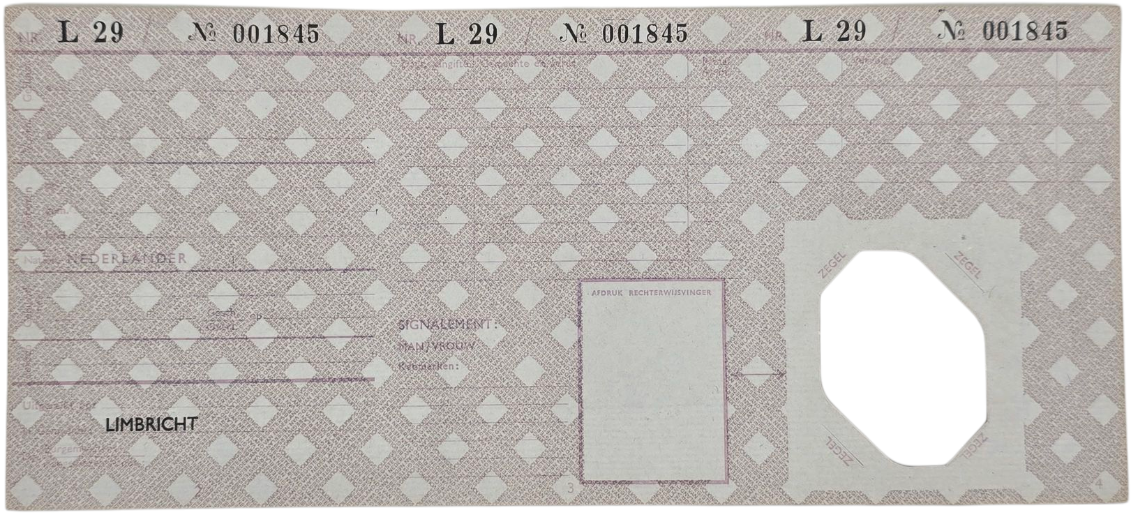 Original WW2 Dutch Document - Unused Persoonsbewijs Limbricht, Limburg
