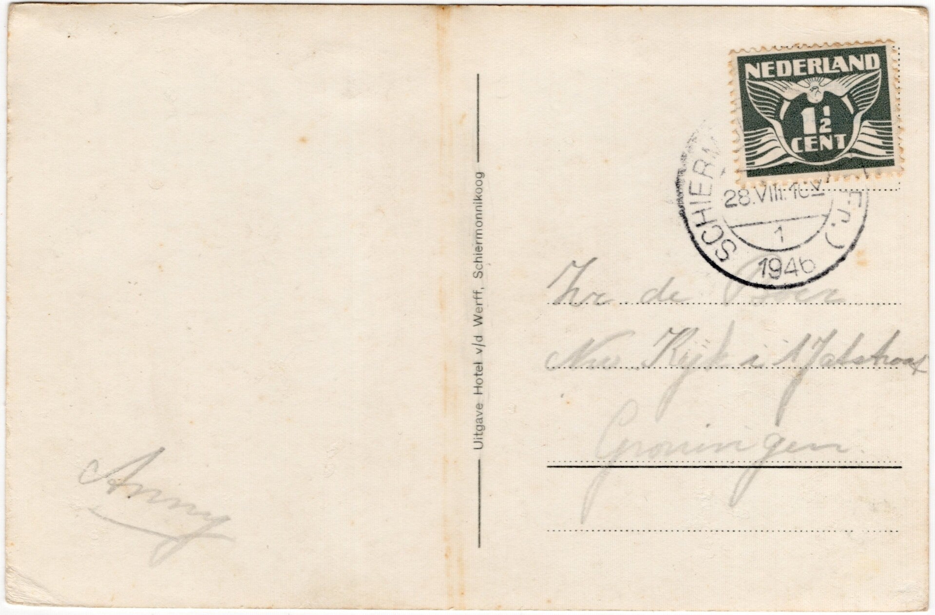 Geprint in 1941, verzonden in 1946 naar Groningen.