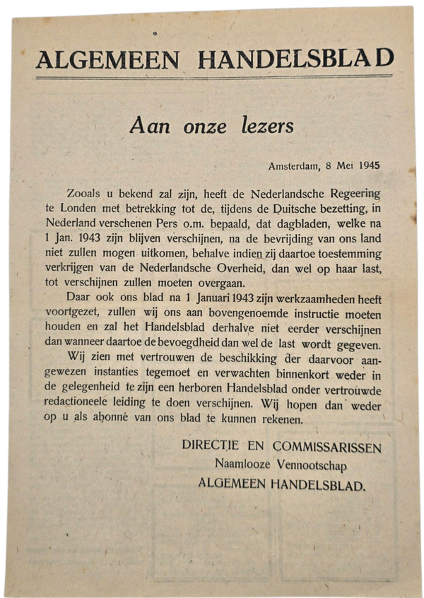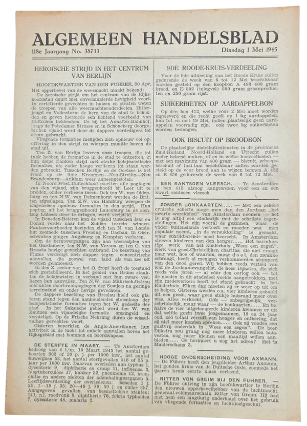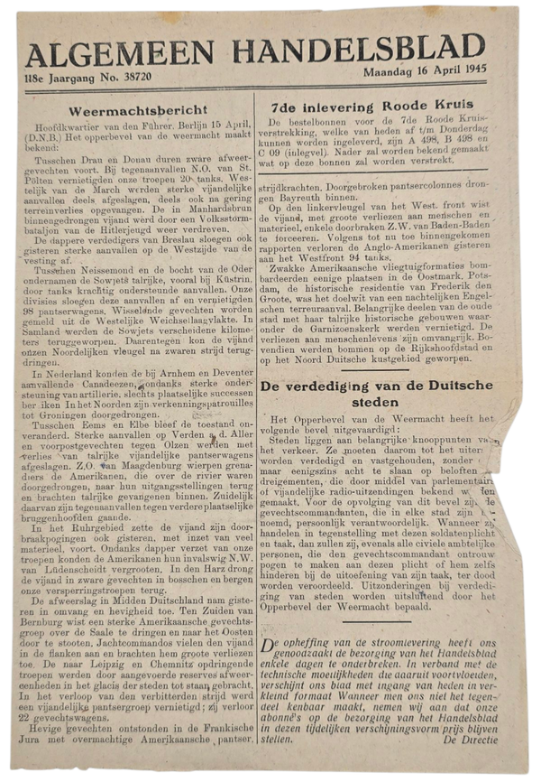 Original WW2 Dutch Newspaper - 16 very late war ''Algemeen Handelsblad'' editions (1945)