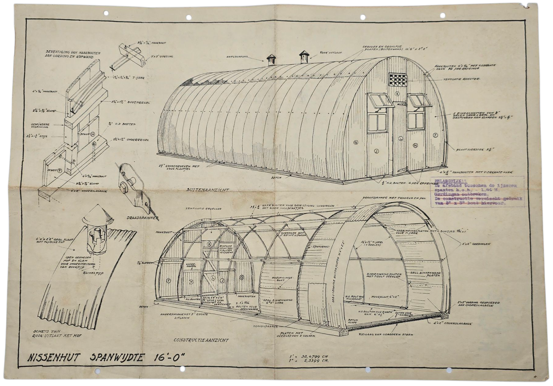 Origineel Wo2 Nederlands LBD Document - Luchtbeschermingsdienst, shelter ''Nissenhut''