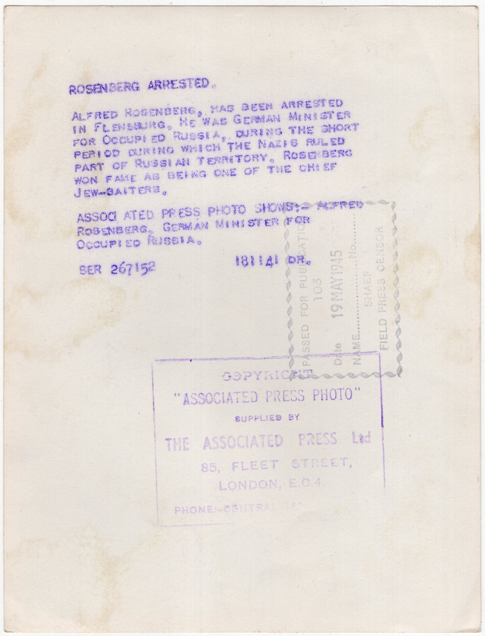Originele Wo2 Britse Persfoto - Portret van Alfred Rosenberg (1945)